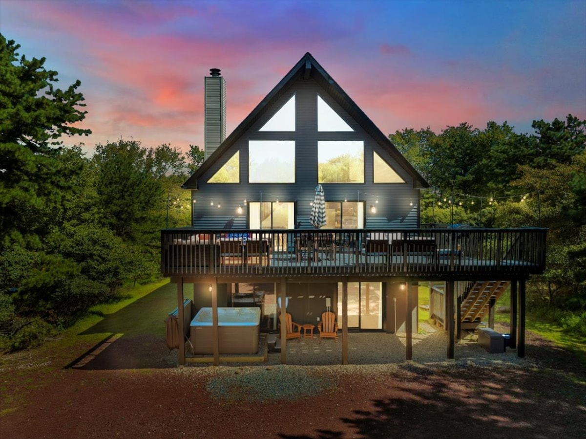 ¡La temporada de esquí/tubing está a la vuelta de la esquina! Escápate al "Eclipse", una moderna cabaña de inspiración escandinava ubicada en .5 acres con vistas a un sinfín de bosques. El Eclipse ofrece servicios cuidados, como una llamativa chimenea de gas, una divertida consola de arcade, golf de disco, etiqueta láser y un delicioso carrito de palomitas para las noches de cine. Relájate en el jacuzzi bajo las estrellas o disfruta del encanto en forma de A iluminado con LED. En 'Eclipse', todas las estrellas se alinean para una estancia verdaderamente mágica.