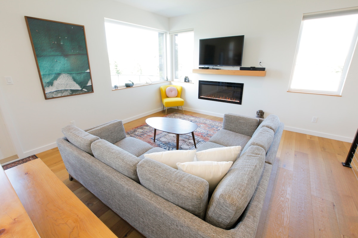 La casa se encuentra en la ciudad, en la cima de Gibson Heights, una nueva urbanización detrás del restaurante Shelter. Casa de vacaciones nueva, luminosa y cómoda, construida a medida en el corazón de Tofino. - Vistas desde una colina de montaña. - Todo lo necesario para una estancia fantástica. - El propietario/gerente vive en Tofino y está disponible para cualquier duda. - Aparcamiento privado para que puedas ir caminando a la ciudad (2 minutos a pie). - Ducha exterior. No se admiten mascotas Prohibido hacer fiestas Número de licencia comercial: #20240255