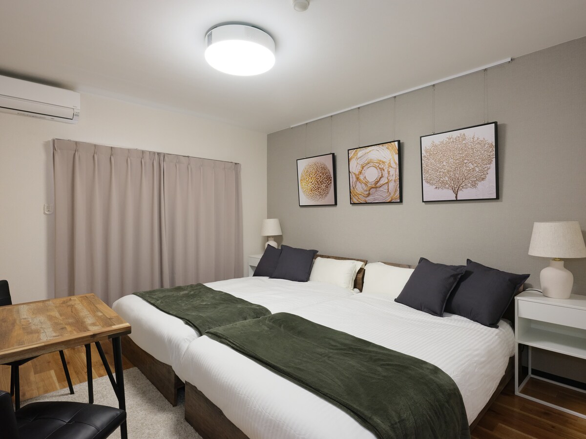 Apartamento entero con entrada propia, cocina y baño con capacidad para 2 personas. El departamento fue construido en 2021. El apartamento está ubicado a 2 minutos a pie de un parque con un estanque, un campo de béisbol y un sendero para correr. El parque limita con el pequeño centro de la ciudad y sus diversos restaurantes (a 5-10 minutos a pie). La estación más cercana está a 8-9 minutos a pie. Conbini (711) está a 4 minutos a pie. Hay estacionamiento gratuito disponible en el sitio. Si te interesa usar el gimnasio, ponte en contacto con nosotros.