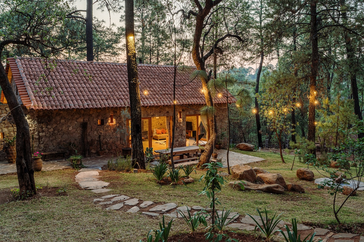 Esta parte del bosque se caracteriza por sus grandes árboles, aves, ardillas, conejos y noches estrelladas que, en compañía de fogatas y buena vibra, lo hacen un gran lugar para conectar contigo mismo. Podrás disfrutar de una cabaña de piedra al estilo toscano, con todas las comodidades que la vuelven muy acogedora. Seguridad 24hrs. Perfecta para planes románticos, de descanso o para quien busca trabajar fuera de la rutina. A 15 minutos del centro de Tapalpa.