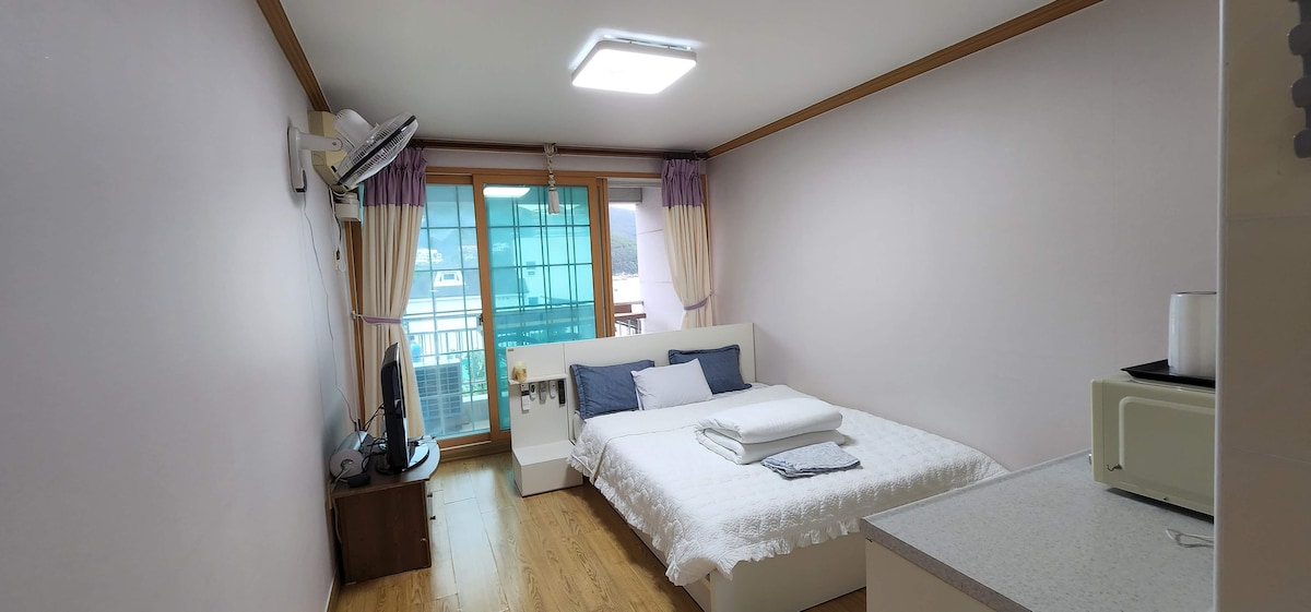 La vista ⛵al mar es una casa de lujo adecuada para toda la familia. Hay tres ❄aires acondicionados instalados en la sala de estar y la habitación, y puedes usar todo el piso de 34 pyeong. La vista desde la vista🏝 al mar es ~ 🛏La🛋 sala de estar y la habitación, así como la vista 🏞al mar, incluso desde la cocina ~ Nos enorgullecemos de ser los mejores de Deokpo. Es un edificio que bordea el 🏢mar, por lo que puedes quedarte dormido y despertarte con el sol de la 🌅mañana mientras escuchas 🌊el sonido de las olas. 🏖La playa de Dukpo es un famoso lugar 🌄al amanecer, y solo ver el amanecer salir sobre el mar desde la sala de estar hará que tu corazón florezca. Está unido a la playa, por lo que puedes 🚿ducharte cómodamente 🥽después de jugar en el agua. Deokpo Beach es una playa tranquila con una playa de 🏖arena, que la hace adecuada para 🧼jugar en el agua con niños. (Las sombrillas y las sillas se alquilan de forma gratuita) La playa está equipada con instalaciones convenientes como restaurantes de mariscos y restaurantes de pollos. Para otras consultas, póngase en contacto con KakaoTalk geoje1