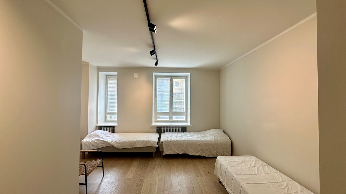 Comfortable, peaceful, and spacious one-bedroom apartment in a central location with great connections to downtown services and green areas. Professional workspace. Warm indoor parking for 49 euros per day, accessible by elevator. Sleeps 4 comfortably in Tempur adjustable beds: one King Size and two single beds. Option for 5th person on sofa with additional mattress. The apartment has high-quality sound insulation and blackout curtains, so you can sleep very well in it. Especially after sauna.