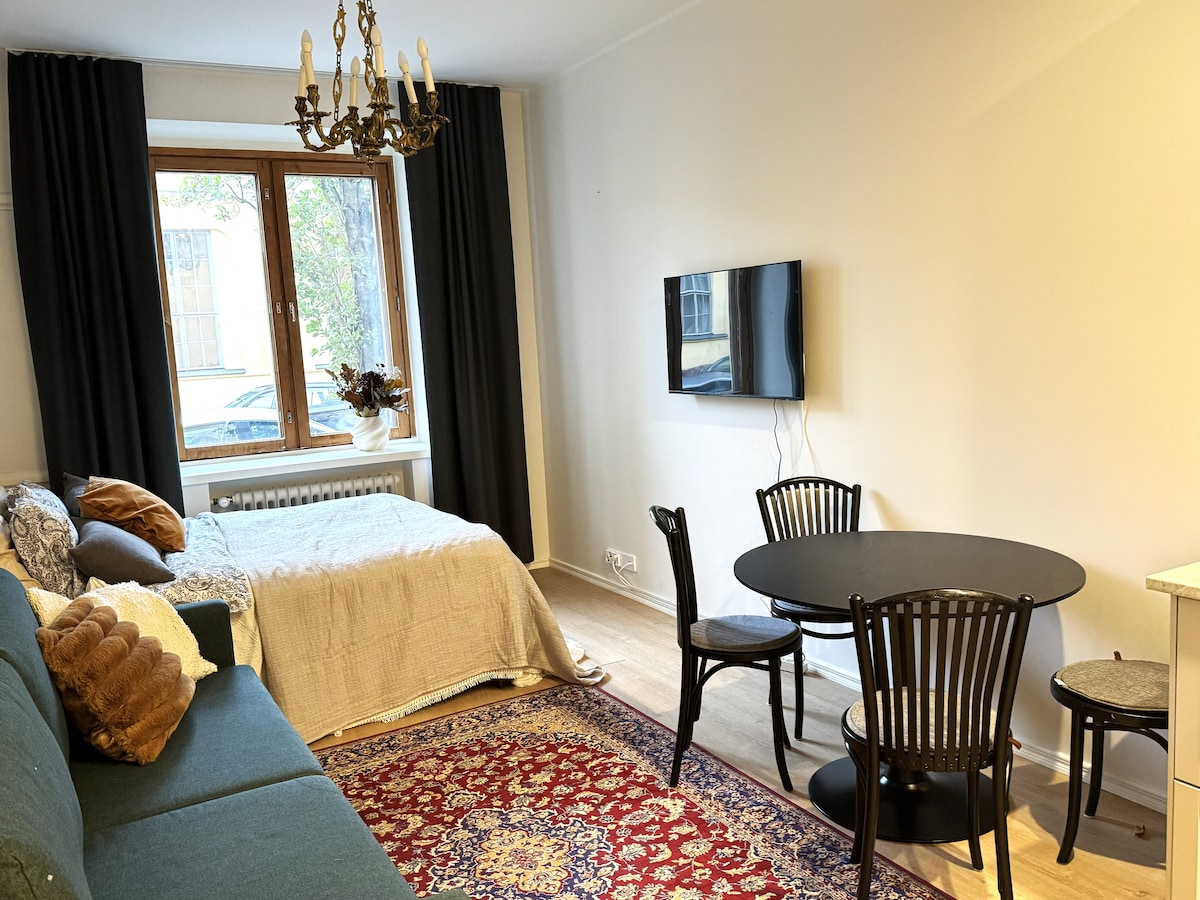 ¡Bienvenido a tu apartamento tipo estudio recientemente renovado en el centro de la ciudad de Helsinki! Situado en una ubicación privilegiada, este elegante espacio se encuentra a pocos pasos de atracciones, cafeterías y restaurantes. El edificio, que data de la década de 1920, cuenta con techos altos y amplios alféizares, lo que le añade encanto. En el interior, disfruta de comodidades como wifi de alta velocidad, Netflix en un televisor de 55 pulgadas, un secador de pelo y una plancha. El apartamento puede alojar cómodamente hasta cuatro personas. ¡Reserva tu estancia para un refugio urbano perfecto en Helsinki!
