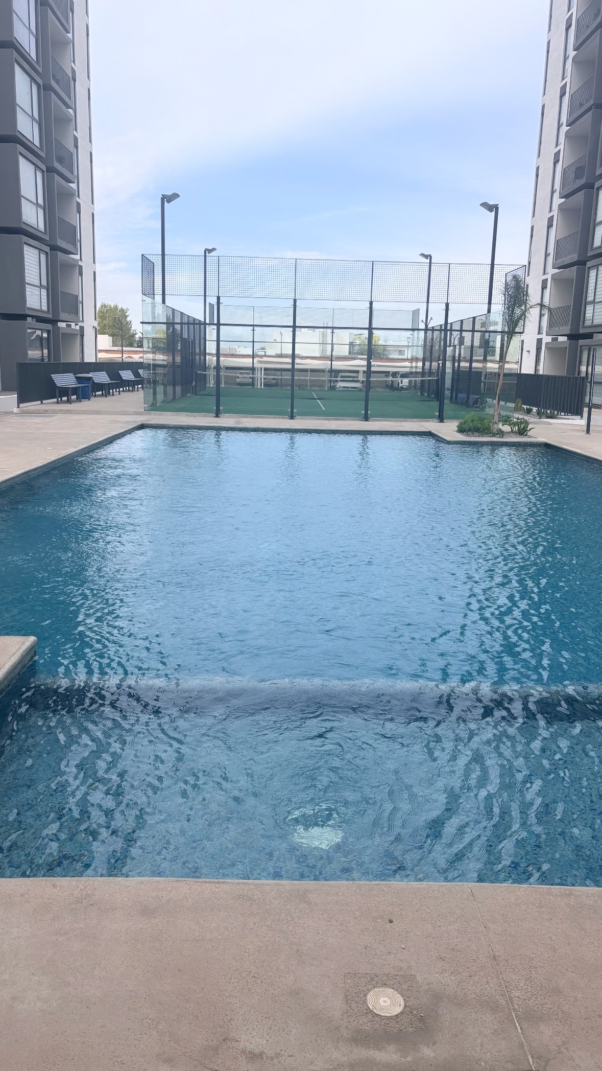 Sumérgete en la comodidad de nuestro exclusivo departamento de 2 recámaras y 2 baños. Camas king y queen size, wifi y 3 televisores. Disfruta la comodidad de confortable sala, cocina equipada con electrodomésticos, 3 Mini Split para un clima perfecto, centro de lavado y de 2 lugares de estacionamiento. En áreas comunes, acceso a bonita alberca, área de Coworking, entretenimiento asegurado con mesa de billar. Además, aprovecha la oportunidad de jugar pádel y vivir una experiencia inigualable.