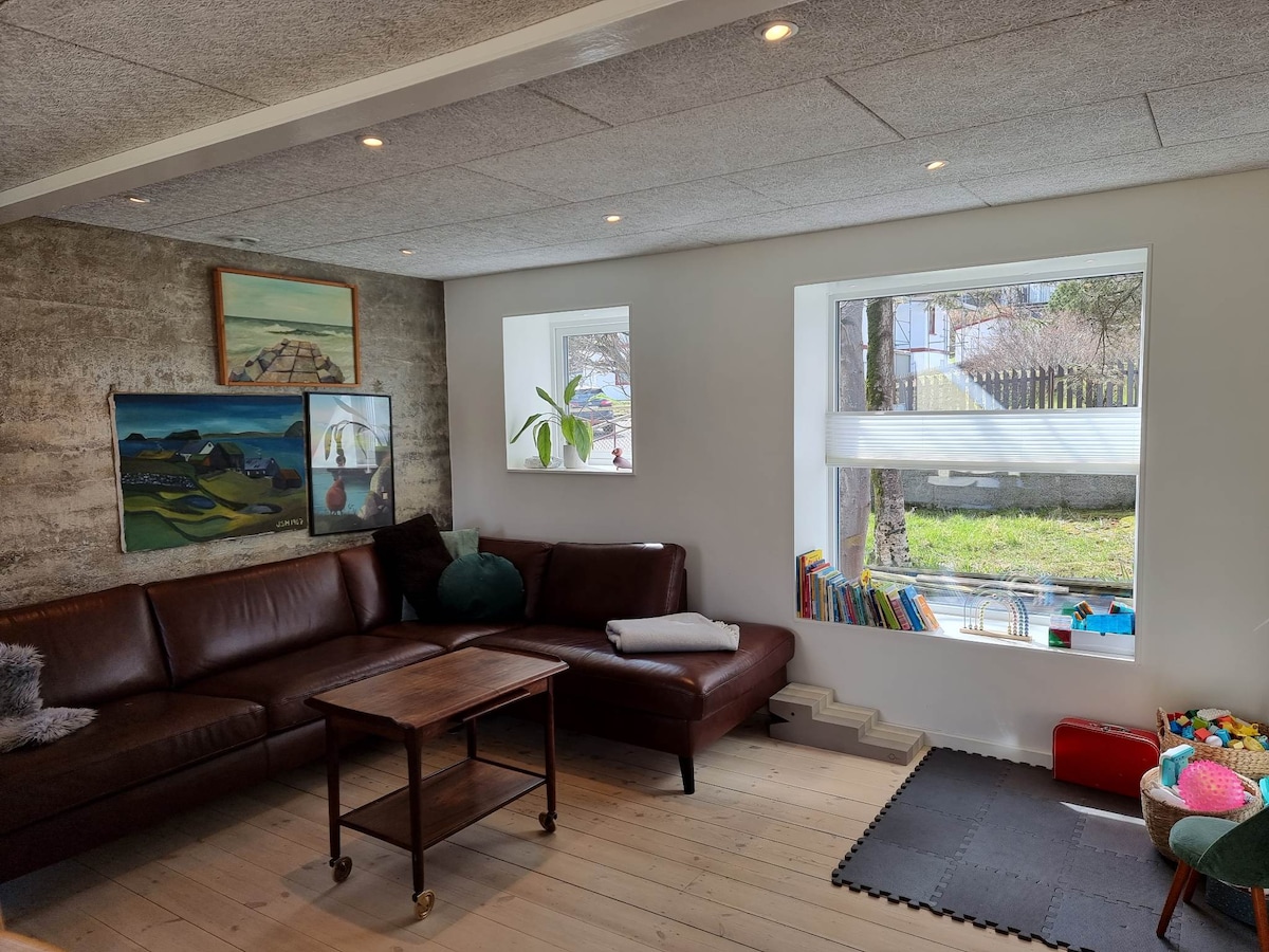 Apartamento grande y tranquilo en medio de las islas Feroe. Geográficamente central. La distancia más larga en coche es de aproximadamente 1 hora en coche. 6 de las islas están conectadas por túneles y puentes. Está a unos 15 minutos de Tórshavn a través del nuevo túnel submarino. Pueblo tranquilo junto al mar. Bonita vista desde el salón. Te encantará mi casa por la paz, las vistas y los alrededores.
