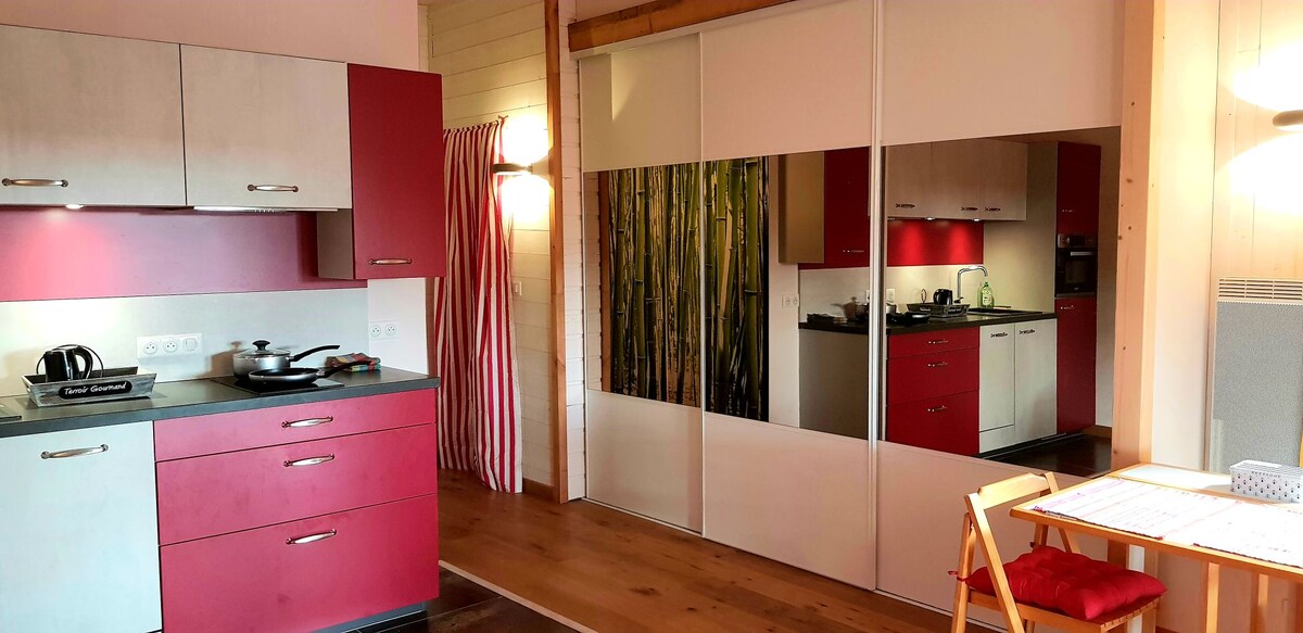 Estudio de 30 m2 totalmente equipado, perfecto para un fin de semana tranquilo, solo o en pareja, ideal para descansar y disfrutar de la naturaleza circundante. Contiguo a nuestra casa principal, también puede disfrutar de nuestro jardín Amueblado a principios de 2023, con televisión y caja de internet Descubra el hermoso paisaje que rodea este alojamiento, le esperan muchos paseos a pie o en bicicleta...