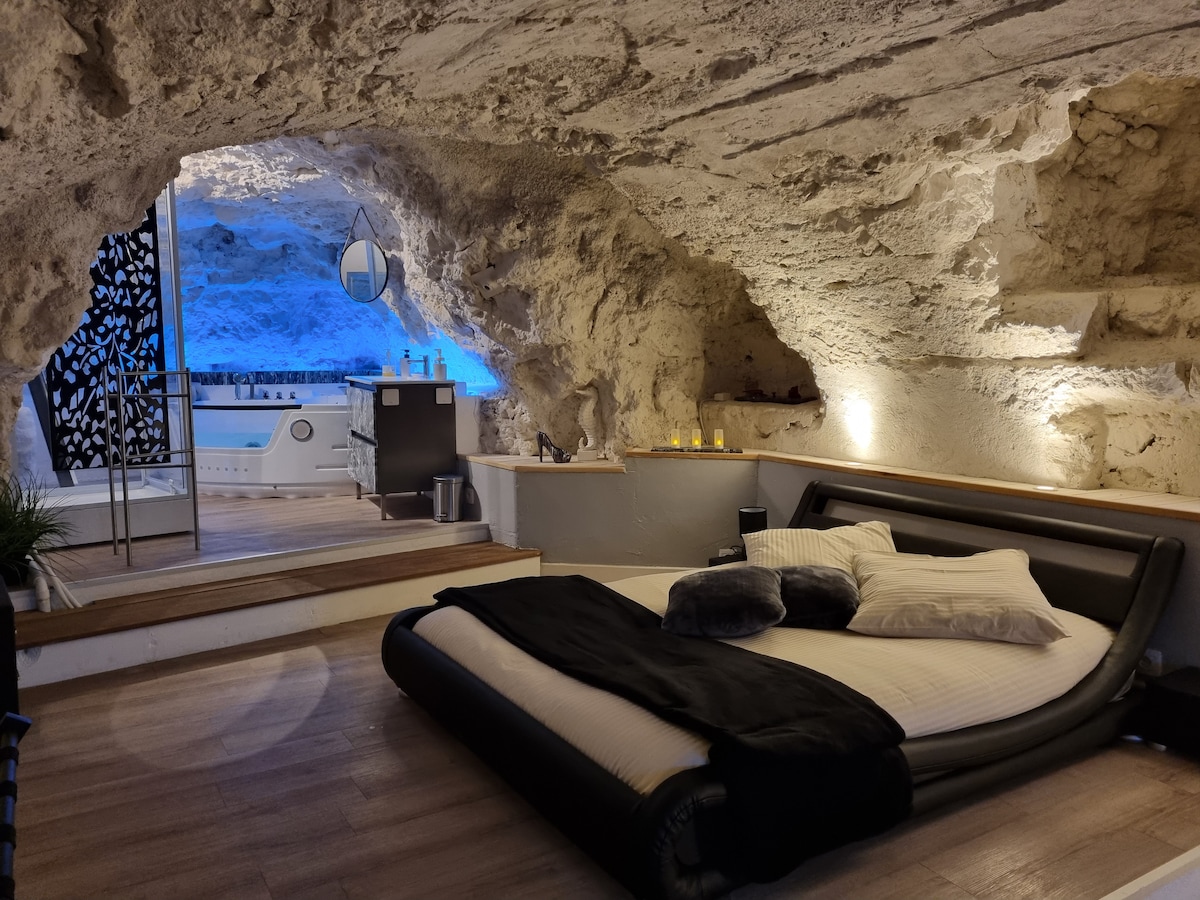 ✨ Vive una experiencia única Sumérgete en una lujosa suite troglodita, un universo único donde la piedra natural, la luz y el confort se mezclan para crear una escapada sensorial inolvidable. Diseñado para parejas que buscan romance y relajación, este refugio único cuenta con un spa interior privado, climatizado durante todo el año. Un refugio atemporal, donde el bienestar, el encanto y la emoción se unen.