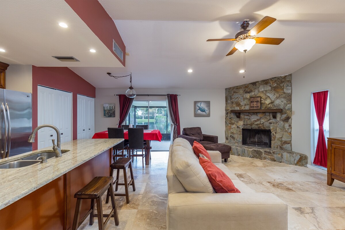 ¡Casa de concepto abierto de 3 camas totalmente renovada con hermosas vistas al estanque y PISCINA completamente nueva! Lujosos suelos de travertino y suelos de madera raspados en toda la casa y baños bellamente modernos y renovados. Gran parque del condado a sólo 75 pasos de la puerta principal con áreas de juego para niños, pista de fitness y canchas de baloncesto hacen de este un gran lugar familiar o a largo plazo para alojarse. A 15 minutos de Busch Gardens, a 20 minutos del centro de Tampa, a 40 minutos de las playas del Golfo, a 1 hora y 15 minutos de Disney.