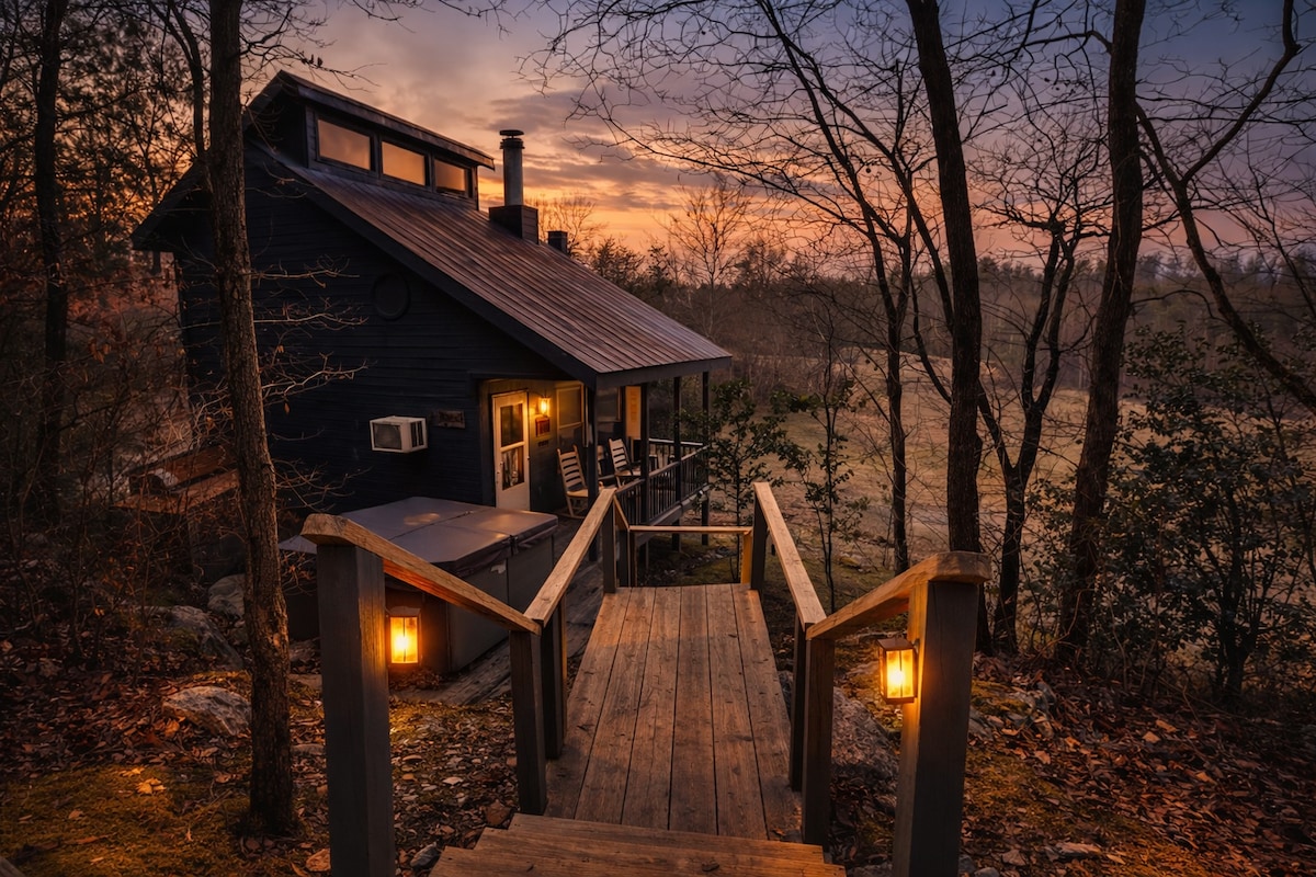 ¡ACOGEDORA CABINA! ¡Televisor de 65 pulgadas, bañera de hidromasaje, jacuzzi y chimenea!