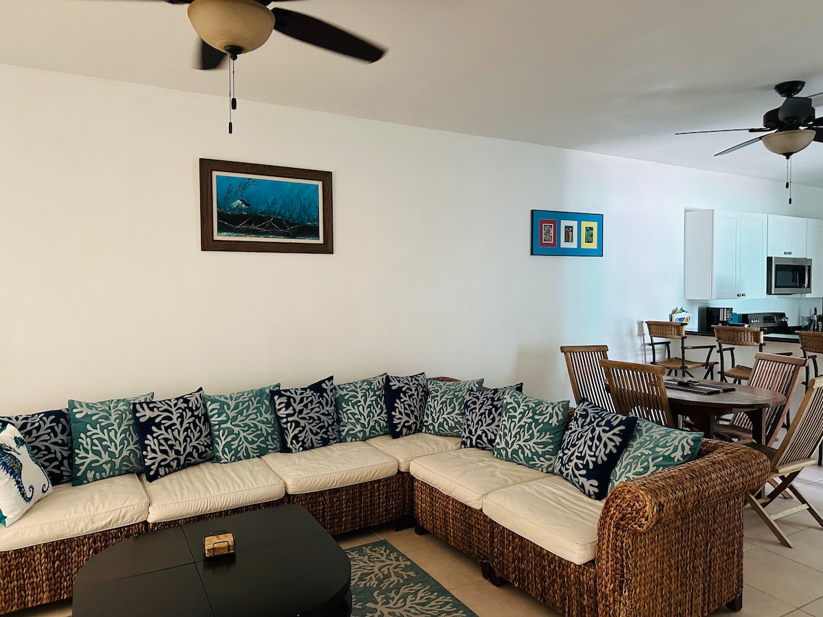 ¡Bienvenido al paraíso! Este condominio céntrico ofrece la combinación perfecta de comodidad y conveniencia para tu escapada a la isla. Este encantador condominio ofrece una acogedora sala de estar, perfecta para relajarse después de un día de exploración. Los dos dormitorios ofrecen un amplio espacio para cuatro huéspedes, y la cocina totalmente equipada te permite preparar comidas deliciosas o disfrutar de aperitivos ligeros. Relájate en el patio privado y toma el sol, el lugar perfecto para tomar tu café de la mañana o disfrutar de una bebida relajante por la noche.