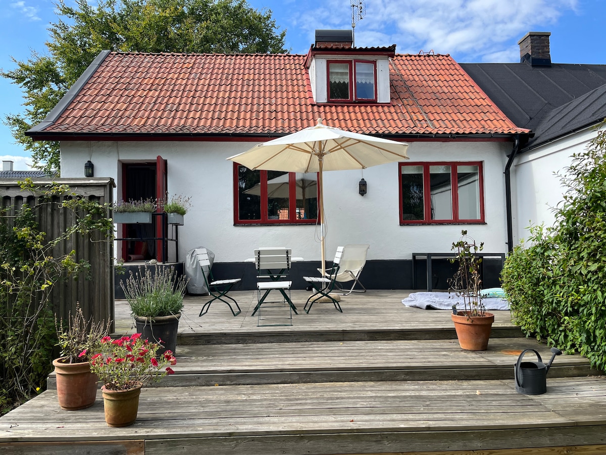 Fridfullt och centralt boende med trädgård som en egen oas. Centrum och centralstation nås på 5 min, stranden på 12 min med cykel. Endast 15 min till Näset, 25 min till Falsterbo och Malmö. Huset är 135 kvm inkl. källarplan med bastu, biljard och relax. Ett sovrum (familjesäng och 2 bäddsoffor som bäddas ut till dubbelsängar). Ett badrum och en toalett. Pool april–oktober. Under sommaren ansvarar gäster även för lättare skötsel av trädgård, pool och vattning av blommor