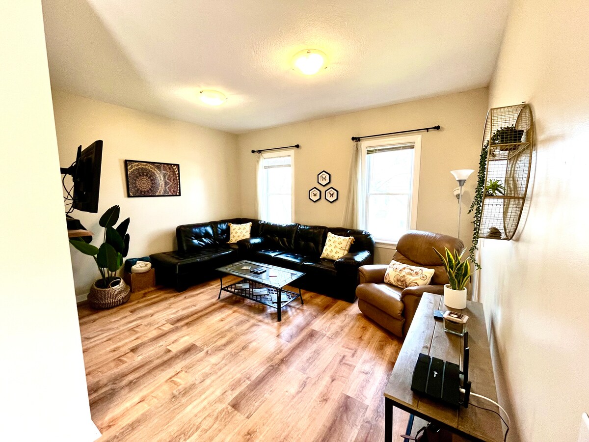 Reformada en 2021, los toques industriales únicos de esta casa se suman a su aspecto moderno. La casa incluye 3 dormitorios, con camas tamaño king, queen y de matrimonio. Hay un futón en el sótano y un sofá en la sala de estar con capacidad para dos personas más. La casa es espaciosa y ofrece dos áreas para que la gente descanse, una en el primer piso y la otra en el sótano. El sótano incluye un televisor, una zona de «bar» y una estación de trabajo.