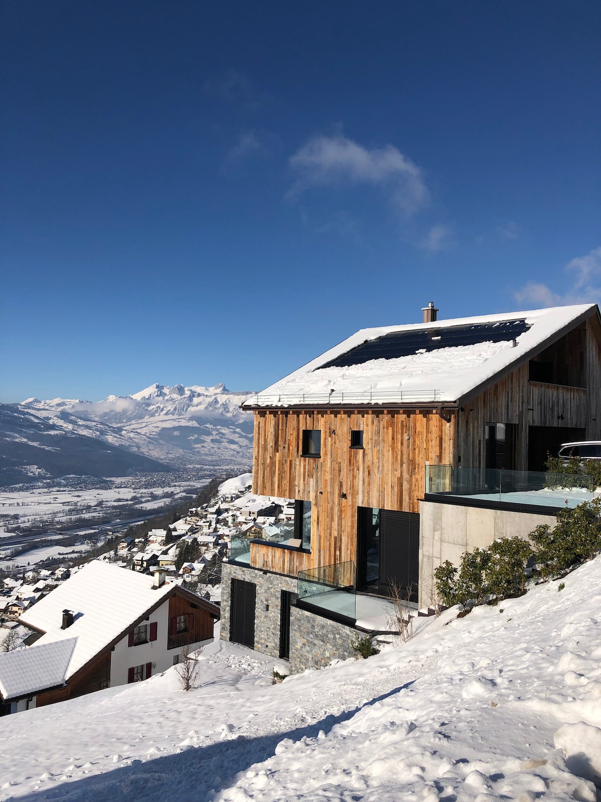 El piso está en la ladera de los Alpes liechtensteinensianos con hermosas vistas sobre el Rheintal-valley. Con estilo moderno, disfrutarás de una estancia cómoda en nuestro pequeño Principado. La parada de autobús se encuentra a un minuto desde el departamento. El centro de la capital de nuestro país "Vaduz" está a 5 minutos en autobús, las montañas para hacer senderismo o esquiar a 15 minutos. El departamento es un apartamento dúplex con dos pisos. El departamento pertenece a 2 lugares de estacionamiento de forma gratuita justo al lado.