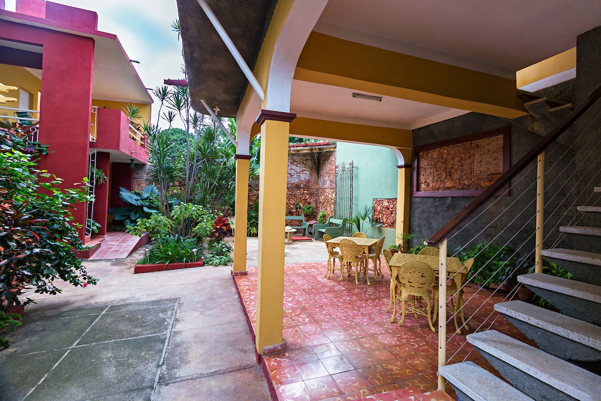 Nuestra Casa Colonial Hostal Emiliana y Martin, está localizada en la zona histórica de Trinidad cerca del centro histórico de la ciudad, a no menos de 5 minutos de la Terminal de Viazul, brindamos con hospitalidad y calidad en los servicios de: 4 Dormitorios confortables y seguros, desayunos, almuerzos y comidas tradicionales cubanas e internacionales, también tragos tradicionales como la Canchánchara. Para recibir al cliente lo hacemos con jugos naturales o tragos cubanos completamente Gratis.