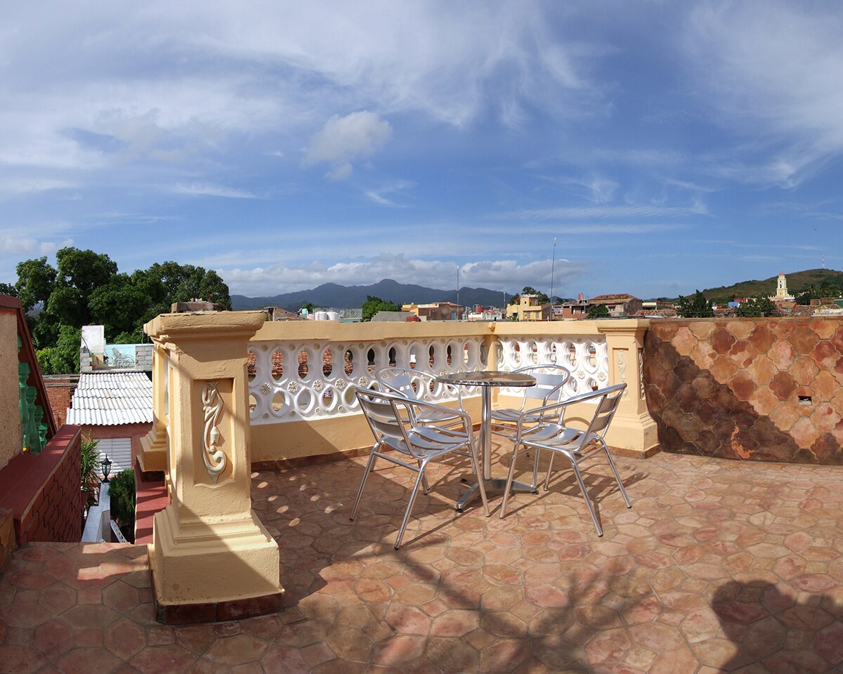 HOSTAL TERRAZAS BENJAMIN.Ubicado A pocos metros de área Histórica 5 Minutos de la Plaza Mayor.Mi casa cuenta con buena iluminación y ventilación,próxima a lugares de interés turístico como el camino a la piscina natural Hoyo del Pilón y la Plaza de las Tres Cruces.En Planta Alta con Habitación climatizada,agua fría caliente,minibar,baño independiente,terraza,done puede disfrutar,de un delicioso café cubano y exquisitos cócteles típicos del país.Se ofrecen Desayunos y Cenas. Coctel de Bienvenida.