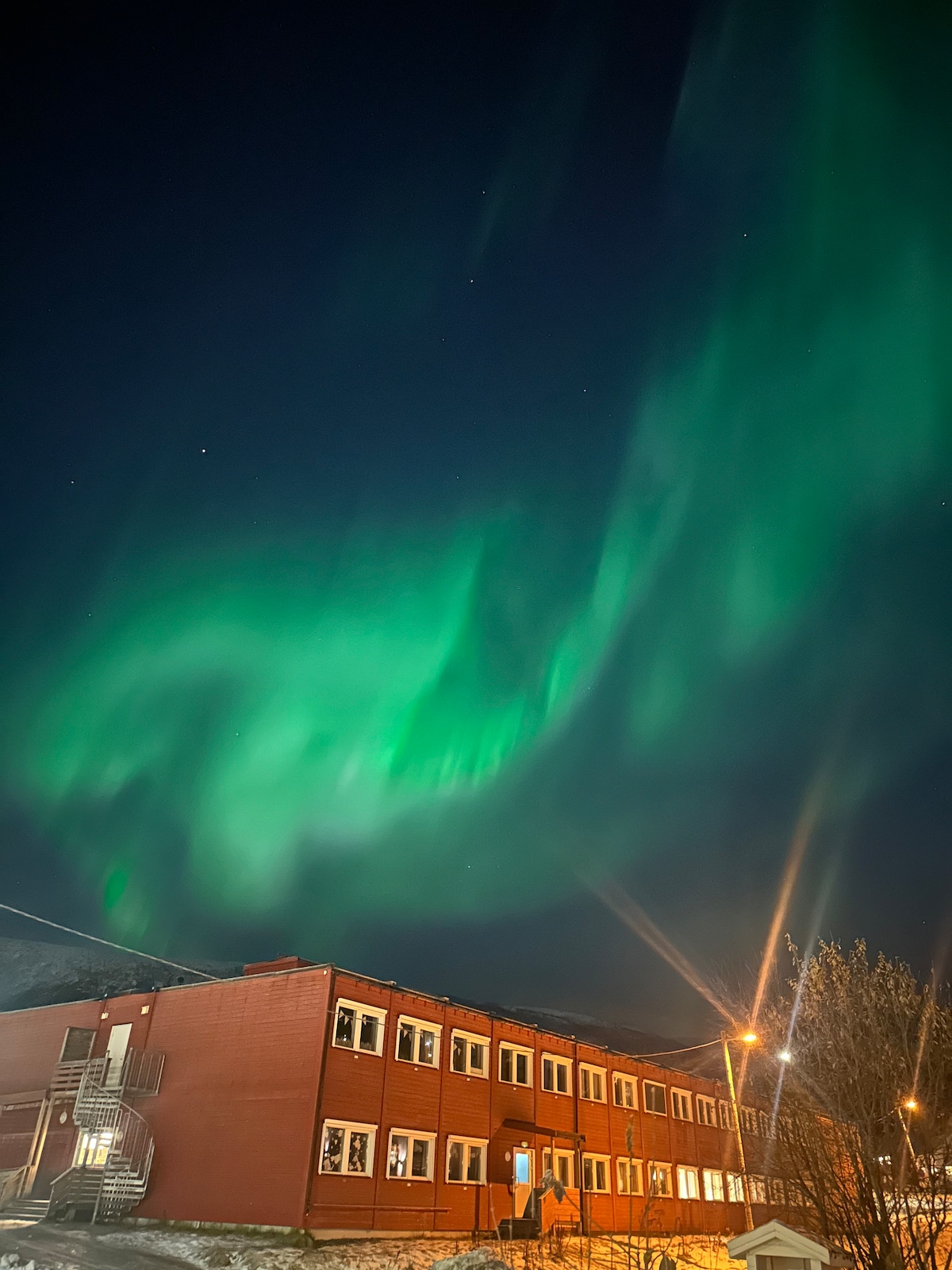 El apartamento es espacioso y tiene una vista increíble. Tienes una vista de 180 grados sobre Tromsø y sus alrededores. Puedes ver montañas, el fiordo, la catedral del Ártico, el teleférico y los alrededores de las montañas.Las auroras boreales se pueden ver fácilmente desde los balcones si está bailando para nosotros. El apartamento se encuentra dentro del centro de la ciudad, con sus muchas atracciones, restaurantes, galerías, museos y tiendas. A poca distancia a pie de todo.