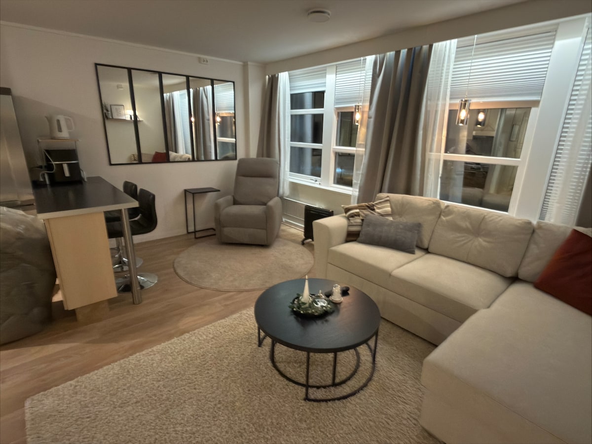 Garage parking included. Experience the Arctic in our modern south-facing seaside apartment . Centrally located and silent, this apartment allows you to relax and unwind by the sea. - Fully keyless experience & self check-in/-out - Well-equipped retreat - Garage parking included / max. height 2.15m (with EV charging option @ at a fair cost) - Responsive communication via AirBNB - Enjoy views from sea to Tromsdalstinden (mountain) We try our best to host a seamless experience. Welcome :)