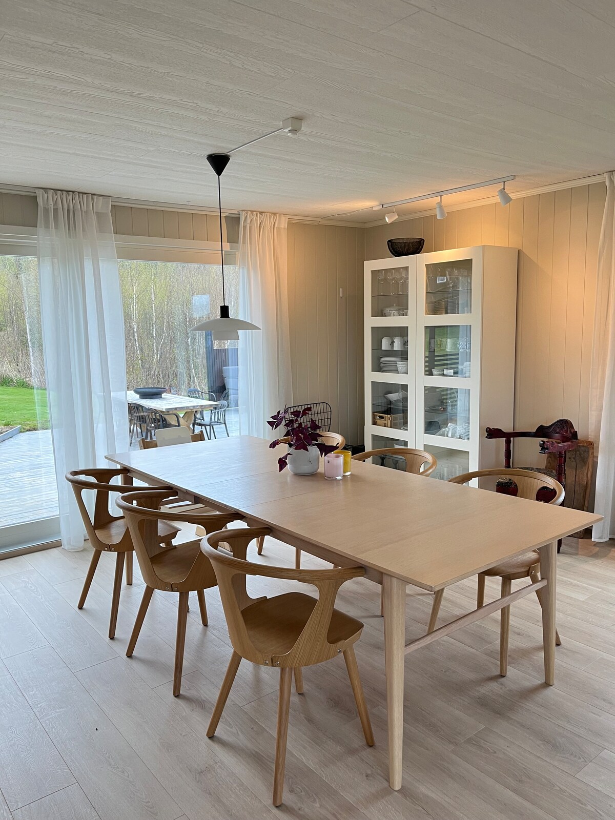 Lys og moderne hytte nær sjøen. Store panoramavinduer med fantastisk utsikt. Kjøkken med oppvaskmaskin. Følger med liten fiskebåt/robåt. Du kan fiske eller bade like nedenfor hytta. Vedfyrt badestamp(bruk må avtales,350 kr ved 1 gangs bruk,deretter 200 pr oppvarming) Sup brett leies ut kr.200 ekstra pr opphold pr. sup Hytta ligger alene på ett nes ytterst i surnadal fjorden. Check in som regel fra 15.00,men ofte mulig å sjekke inn før. 20min unna alpinsenteret Sæterlia og langrennsløyper