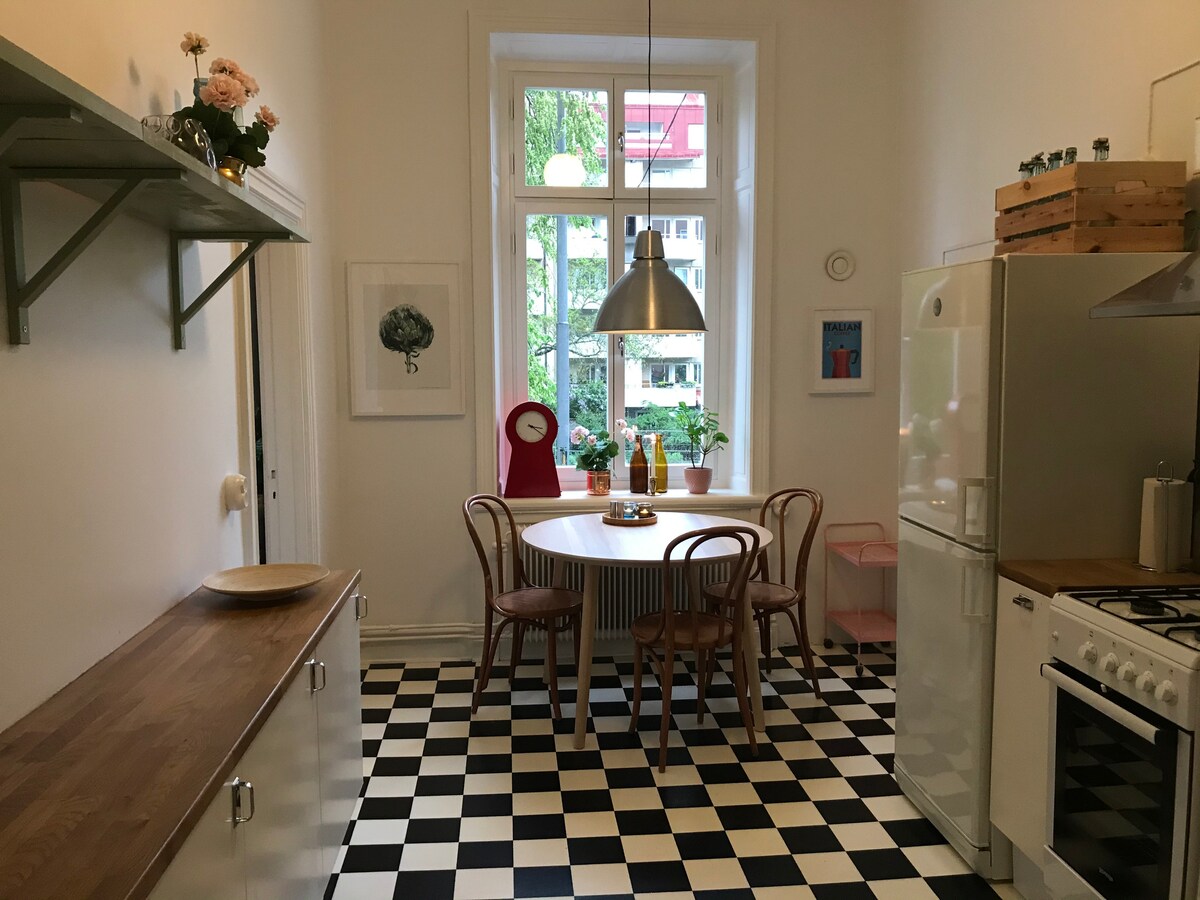 El apartamento está en el primer piso en un hermoso edificio de 1880 situado en el corazón de la zona de moda llamada SoFo en Södermalm. Es un apartamento grande, luminoso, espacioso y muy elegante de 2 habitaciones con todas las habitaciones frente a un maravilloso parque que le da una bonita vista para mirar y una gran privacidad. El apartamento puede alojar fácilmente y muy cómodamente a 2 huéspedes. El área es uno de los lugares populares de Estocolmo con una gran variedad de restaurantes, bares, cafeterías y tiendas.