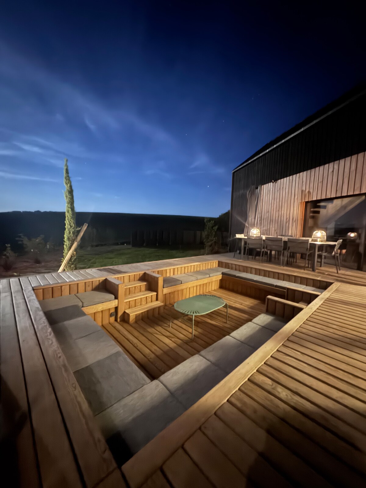 Sumérgete en un paréntesis celestial en el corazón de la galaxia: Entre el cielo estrellado, la luna luminosa y las nebulosas murales, vive una noche fuera del tiempo. Disfrute de un spa balneario de alta gama con chorros de masaje y luminoterapia, una sauna y un ambiente cósmico único. Todo 100 % privado. Cada detalle te transporta al universo: meteoritos, la Vía Láctea, el cielo estrellado y la suavidad interestelar... Una escapada relajante e inmersiva, ideal para soñar en pareja.