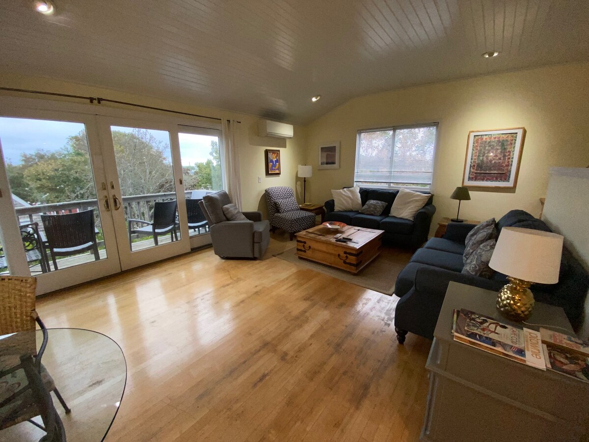 Rediseñada en 2017 por un artista local y ubicada en el tranquilo East End, esta casa de campo independiente te acercará a la vida que anhelas y te envolverá en una verdadera serenidad. A 1,5 millas del centro de la ciudad, este acogedor espacio brinda paz y privacidad. La planta abierta deja entrar la luz del sol y la terraza privada ofrece un amplio espacio para relajarse. A solo 3-5 minutos a pie de la bahía, donde puedes caminar durante millas durante la marea baja. ¡Se admiten perros! Aparcamiento en el sitio para 1 coche, lavandería, un patio compartido.
