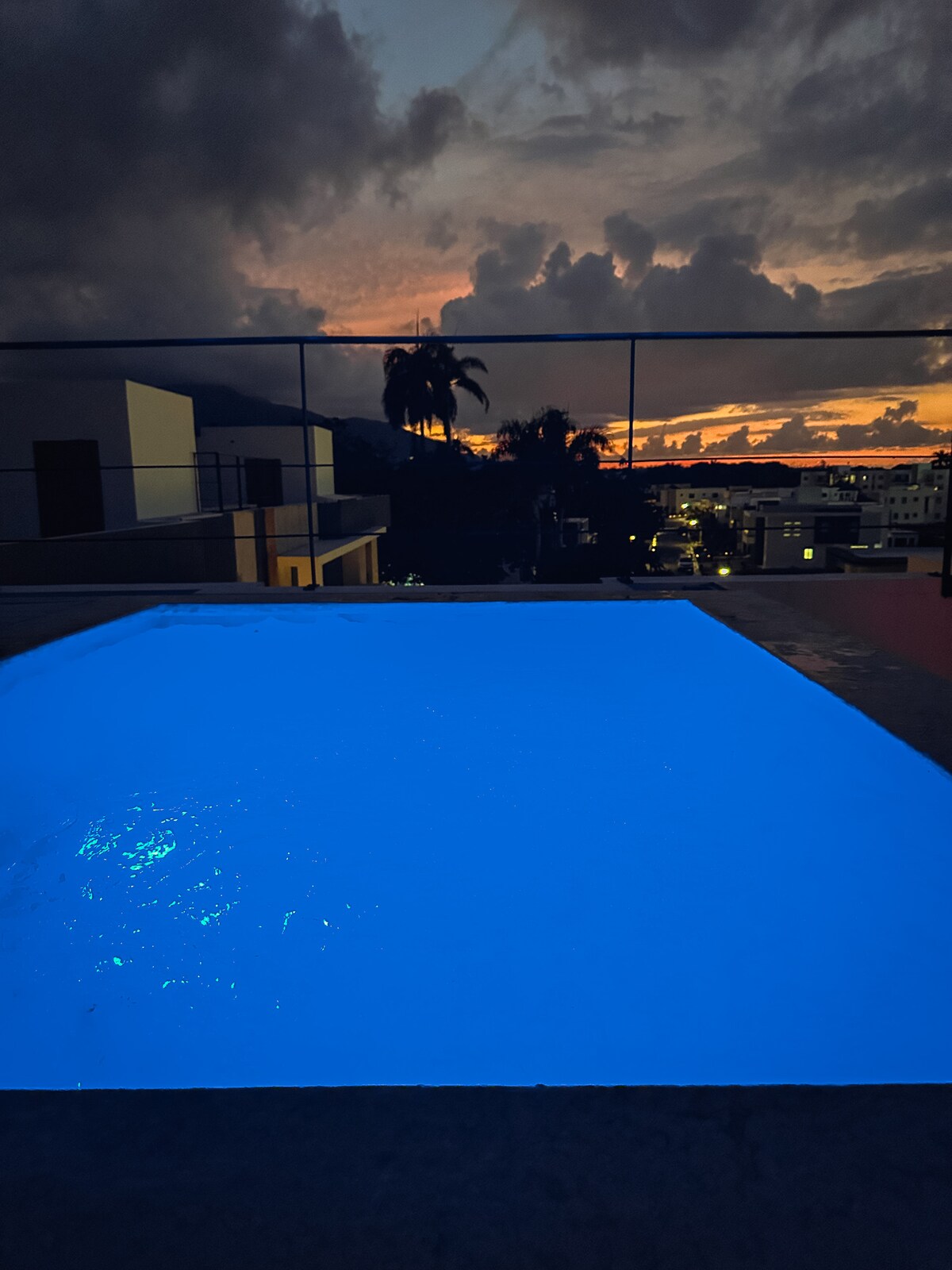 Apartamento a estrenar que te ofrece acceso exclusivo a un paraíso privado en la azotea con vistas panorámicas a las colinas de Puerto Plata desde nuestro Picuzzy. Sumérgete en la relajación en la piscina prístina, una joya oculta para nuestros huéspedes, y la soleada playa Dorada está a 5 minutos. En el interior, descubrirás tres espaciosos dormitorios, cada uno equipado con aire acondicionado refrescante para garantizar tu comodidad. La amplia sala de estar es tu acogedor refugio para disfrutar de memorables noches de cine y tiempo de calidad con tus seres queridos.