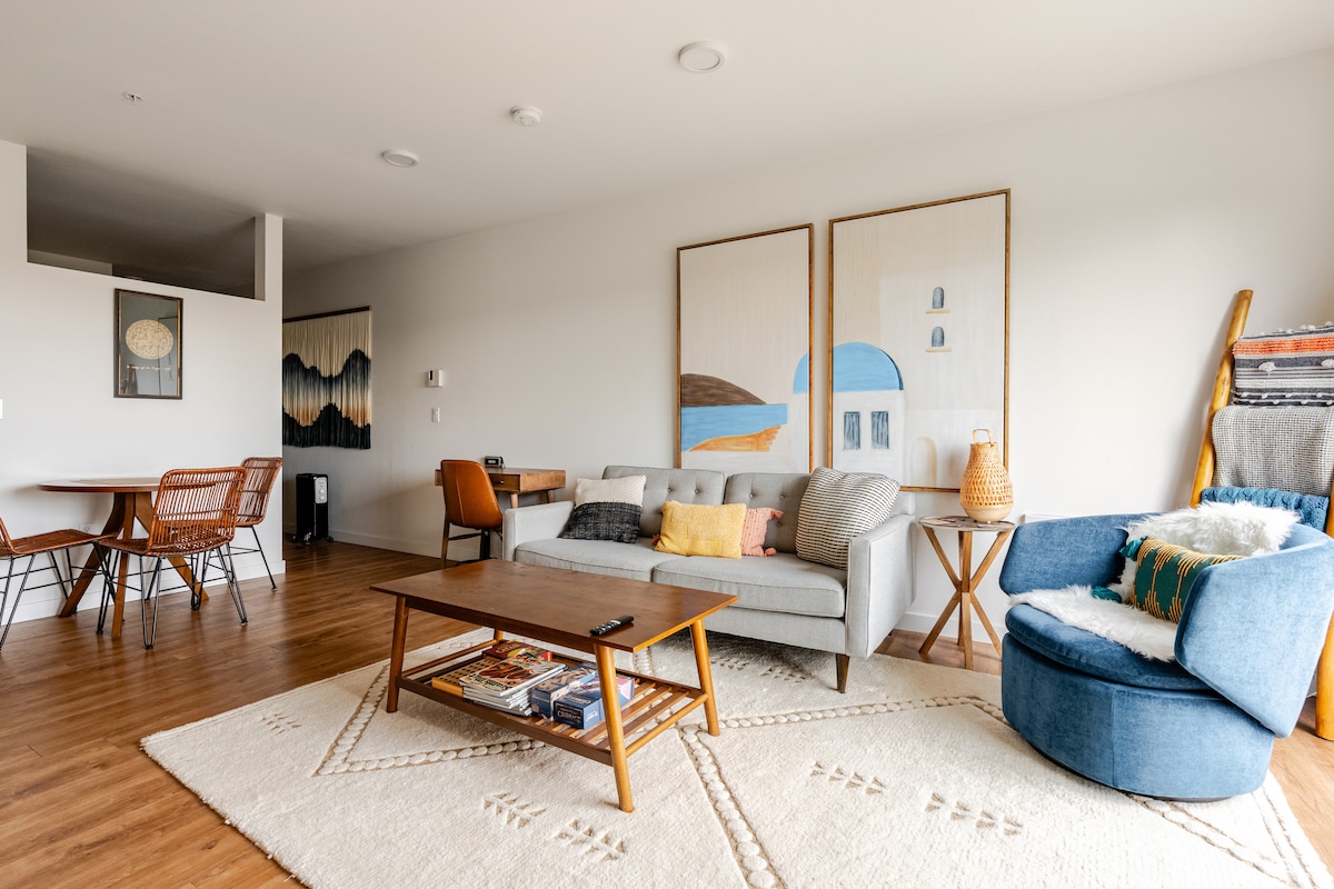 ¡NUEVO! Este apartamento de 1 dormitorio ha sido cuidadosamente diseñado para poder alojar cómodamente hasta 4 personas. El espacio de la cocina y el salón tiene un plano de planta abierto. Las grandes ventanas capturan mucha vegetación y traen la luz de la tarde. Hay 2 áreas de patio con fabulosas vistas a la ciudad (Space Needle incluido) y barbacoas. ¡No dudes en usarlos en cualquier momento! Este es un destino de Seattle con una gran puntuación a pie de 93 en el exclusivo Capitol Hill. ¡Cerca de todo lo que Seattle tiene para ofrecer!