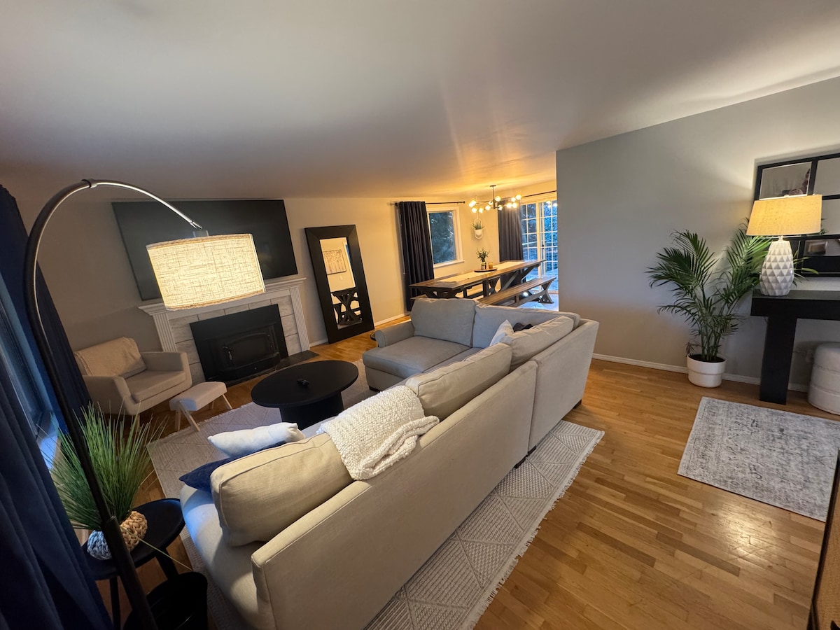 Disfruta de la mejor escapada al noroeste del Pacífico en nuestro impresionante refugio de Shoreline. Con capacidad para hasta 10 huéspedes, nuestra casa de 4 dormitorios y 2,5 baños es perfecta para familias o grupos que buscan escapar del bullicio de la ciudad. Entra y sumérgete en el lujo moderno de mediados de siglo, con muebles elegantes y una decoración impresionante en cada rincón. Disfruta de la comodidad de un cargador de Tesla, un hermoso patio trasero cerrado con chimenea y una cocina totalmente equipada. ¡Reserva tu alojamiento hoy mismo!