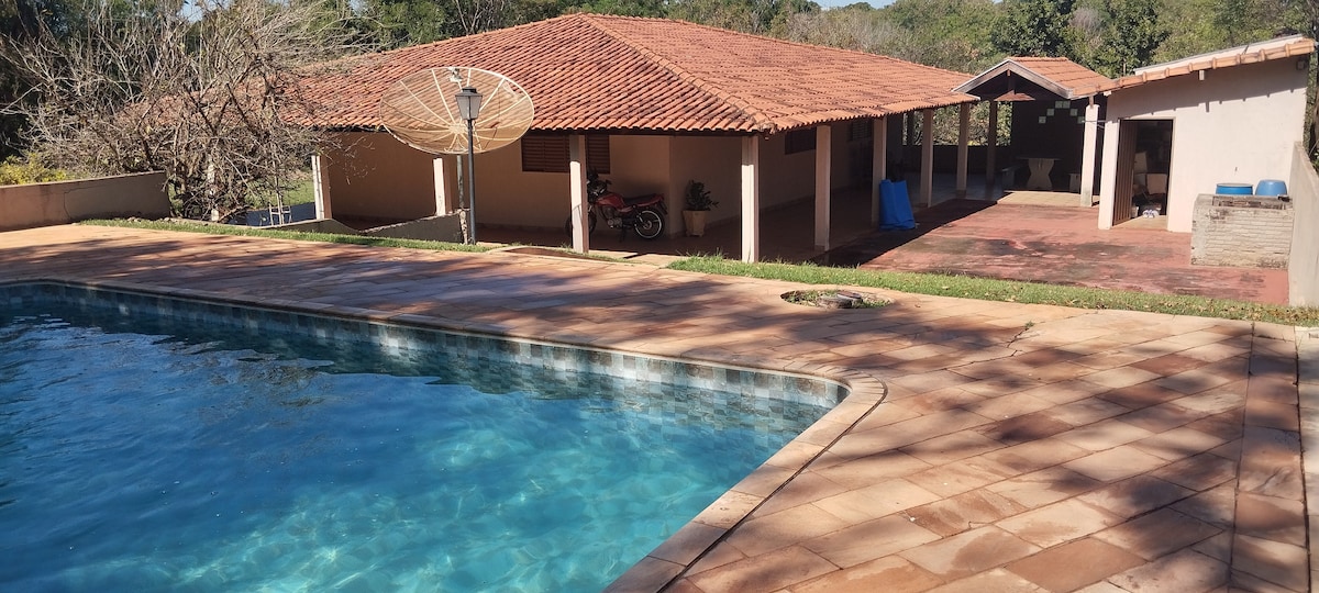 Chácara no interior de SP localizada em condomínio de Chacaras na cidade de Cedral (a 15minutos de São José do Rio Preto e 50minutos de Olímpia). Fácil acesso pela rodovia. Contamos com Piscina de 6m, parquinho infantil, churrasqueira, forno de pizza, quadra de areia, bicicletas, espaço com redes, Wi-Fi, 1 quarto para 4 pessoas com ar-condicionado, 2 banheiros e cozinha equipada com utensílios básicos. Venha passar momentos agradáveis em meio a natureza 🏡