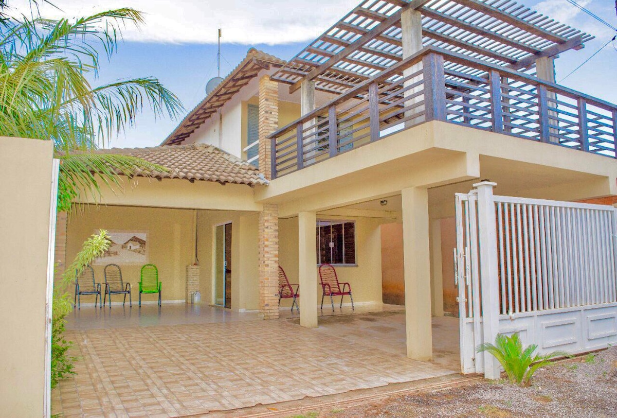 Casa grande com 5 quartos (3 suítes sendo 2 suites contendo ar condicionado apenas ), sala ampla com 3 ambientes, escritório, cozinha completa, piscina, e banheira. Ideal para famílias ou grupos que buscam conforto e lazer. Acomoda com conforto e privacidade, com garagem para até 4 carros. Ambientes climatizados, modernos e bem decorados. Localização tranquila e de fácil acesso. Viva dias incríveis com conforto, sofisticação e segurança!