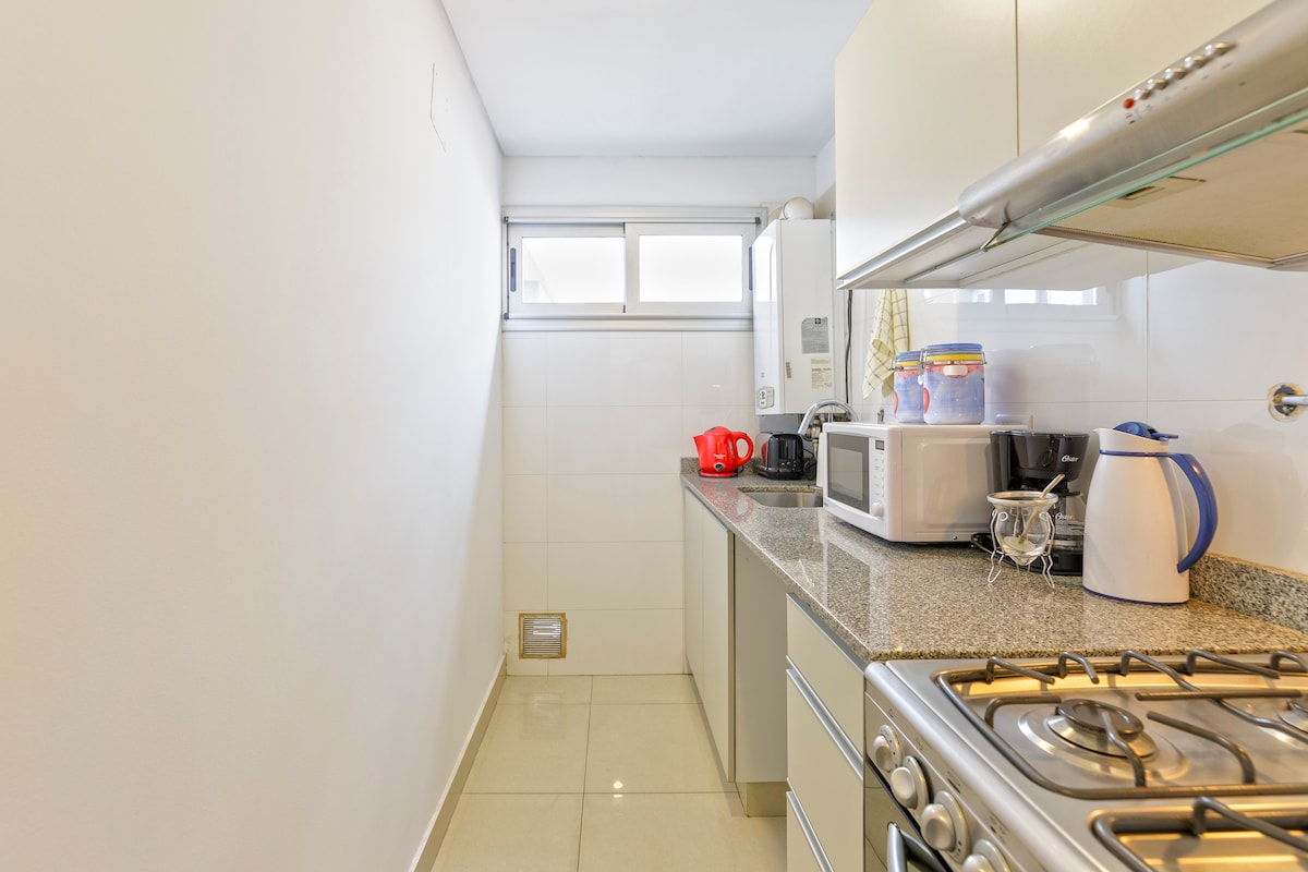 Disfruta de este moderno departamento con gran balcón y vistas que te enamorarán (Sillones y juego de comedor exterior). Dos dormitorios con 2 baños completos. Cocina completamente equipada (lavarropas y lavavajillas). Relájate en un gran sofá para disfrutar de una pelicula. Comedor ideal para compartir momentos. Te recibimos con una canasta de bienvenida de cortesía y ofrecemos gaseosas, champagne y vinos seleccionados (con costo adicional). ¡Perfecto para una estancia inolvidable!