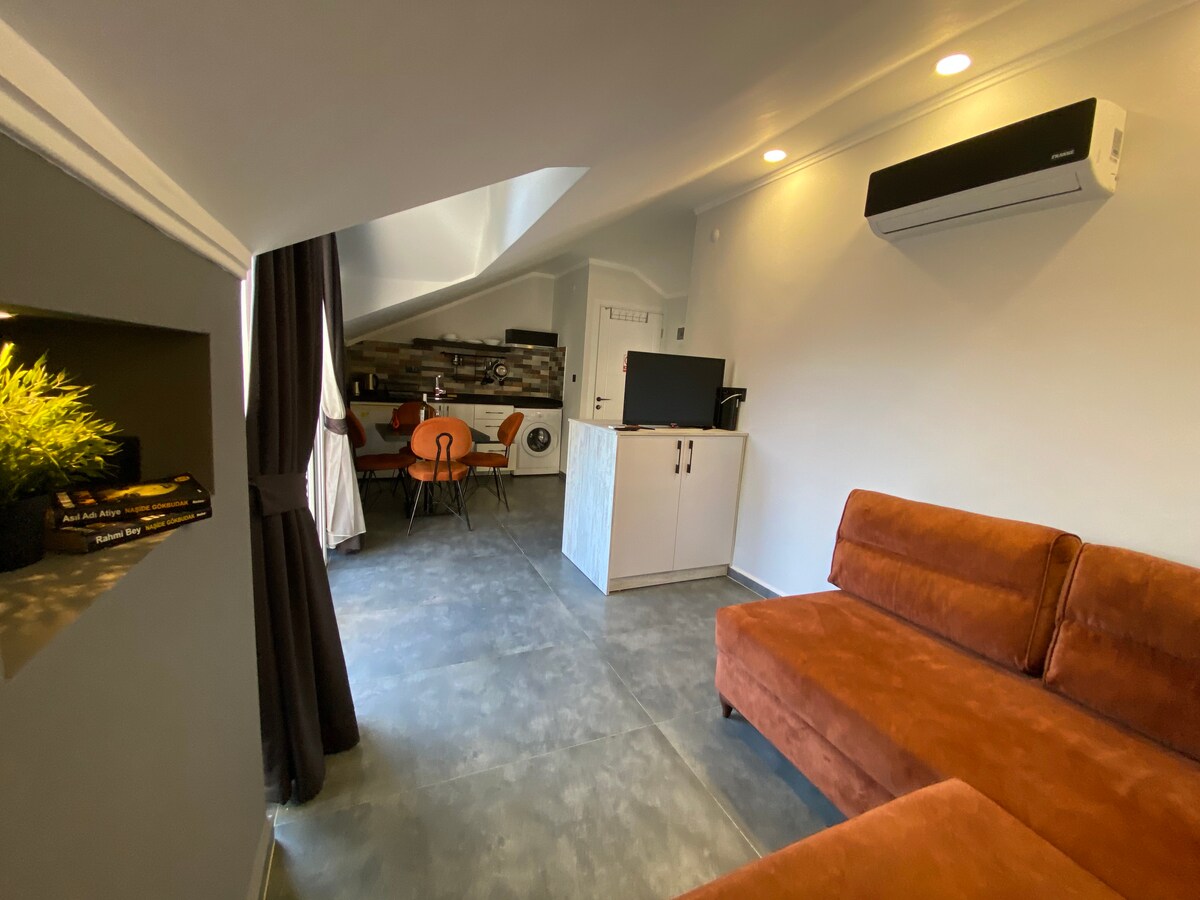 Situado en el corazón de Urla, nuestro encantador apartamento en la azotea ofrece una estancia cómoda y tranquila. El departamento está limpio, funcional y cuidadosamente equipado con todo lo necesario. Puedes disfrutar de tu tiempo en la espaciosa terraza y aprovechar de estar justo en el centro de nuestra hermosa ciudad. Restaurantes, grandes mercados y lugares como Art Street están a pocos pasos. Además, hay estacionamiento gratuito disponible justo enfrente de la casa para tu comodidad.