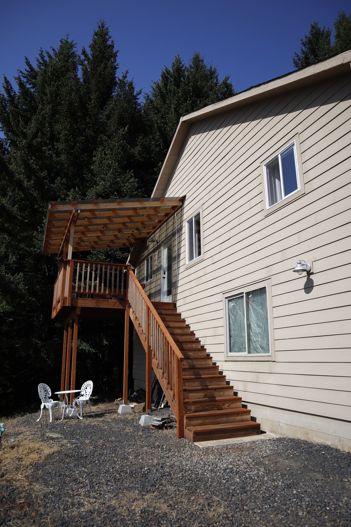 Disfruta de la paz de un entorno rural a pocos minutos de restaurantes y tiendas en el centro de Salem, el Riverwalk y la Universidad de Willamette. Haz una excursión de un día a la costa o relájate y disfruta de una botella de vino en cualquiera de las 2 terrazas, o desconecta junto a la acogedora chimenea en la cómoda suite de invitados del segundo piso con entrada privada. Nuestra residencia se encuentra en una hermosa zona boscosa del sur de Salem con fácil acceso a la Interestatal 5.