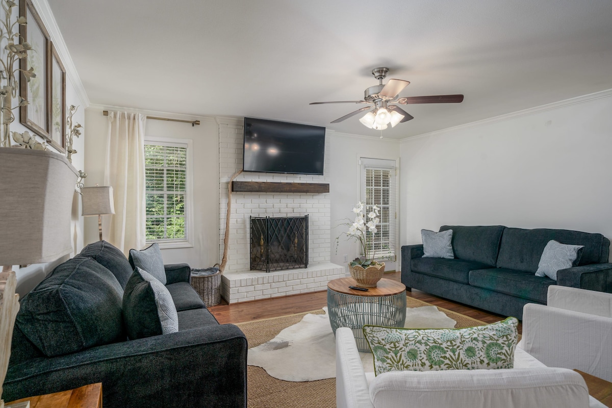 Cómoda casa en un tranquilo barrio de Tuscaloosa con un espacio abierto, Smart TV con YouTubeTV y una chimenea eléctrica. La cocina totalmente equipada incluye electrodomésticos completos, asientos en la isla y una configuración de café. Tres dormitorios con capacidad para ocho huéspedes, con dos baños completos. Disfruta de un patio trasero privado y completamente cercado con asientos en la terraza y parrilla para barbacoa, además de una lavadora y secadora en el alojamiento. Convenientemente ubicado cerca de la Universidad de Alabama, el Hospital DCH, tiendas y restaurantes.