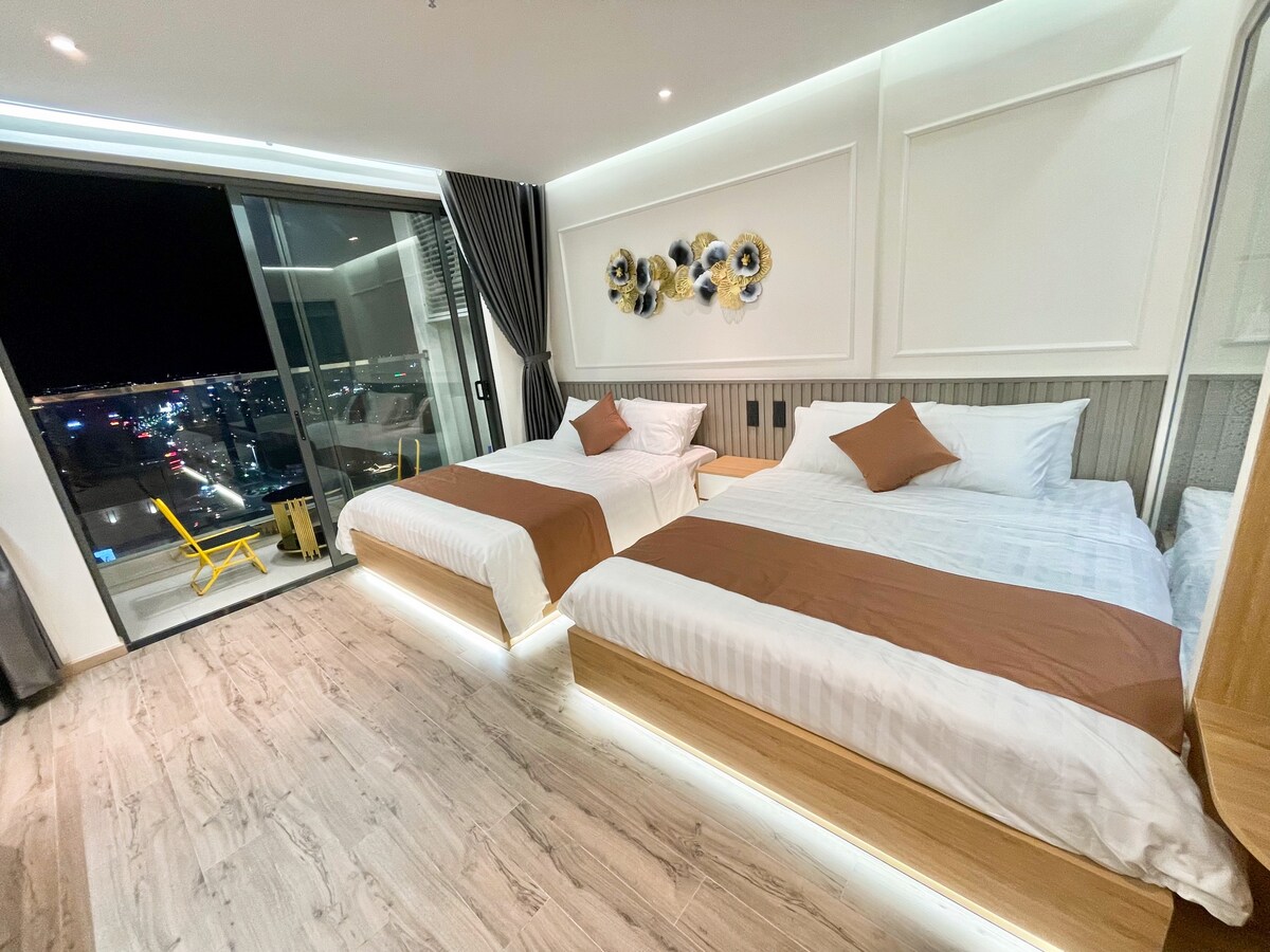 El departamento está ubicado en el hotel Apec Mandala Phu Yen de 5 estrellas, inaugurado en 2021, es el primer Codotel de 5 estrellas en.Tuy Hoa City. El edificio Apec Madala se encuentra en la ubicación céntrica de la ciudad, a 700 metros de la playa, cerca de la zona comercial, el centro comercial Vincom, lo que facilita a los visitantes el mar, el juego y las compras. El apartamento está totalmente equipado con un largo balcón con vistas al mar y un jardín de flores de la ciudad, lo que crea una sensación de paz y relajación cuando se vive aquí.
