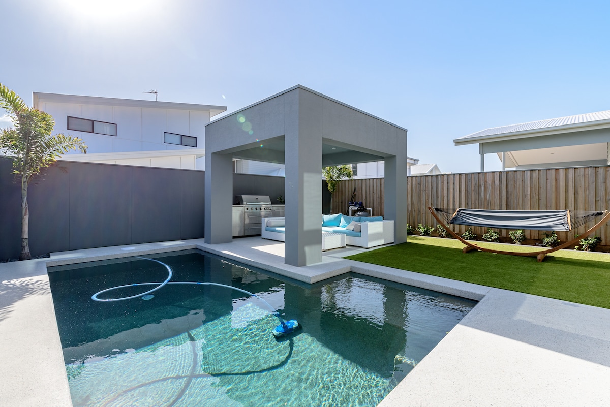 Bienvenido a nuestro alojamiento estilo centro vacacional en Cylinders Drive, Kingscliff beach. Nuestra nueva casa ya está completa y estamos emocionados de recibir a nuestros huéspedes de vacaciones. Hemos dedicado todo el espacio habitable del primer piso a alojamientos vacacionales. Con acceso privado y seguro a una espaciosa suite de 2 dormitorios totalmente independiente con espacio de estar lleno de sol que se abre a su piscina de uso exclusivo y al área de la cabaña. Estamos justo enfrente de una hermosa playa de arena blanca.