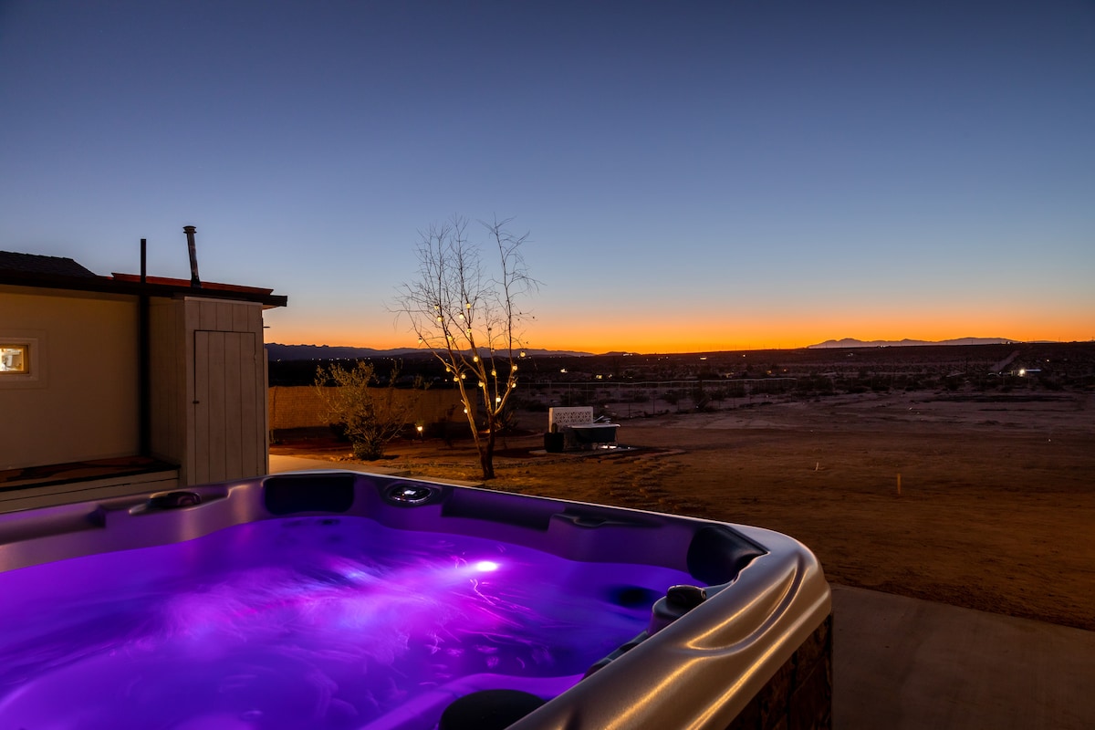 Welcome to Sunset Sage ~ an inspired desert retreat personally designed, built, and styled by a true artist. Every detail, from the layout to the artwork, reflects a labor of love and creative vision. Soak under the stars in the hot tub, cozy up by the fire pit, or curl up with a book in a hammock. Whether you're stargazing with friends or enjoying quiet moments alone, Sunset Sage was made to inspire. Play a round of pool, sip something cold in the sun, and create lasting desert memories.