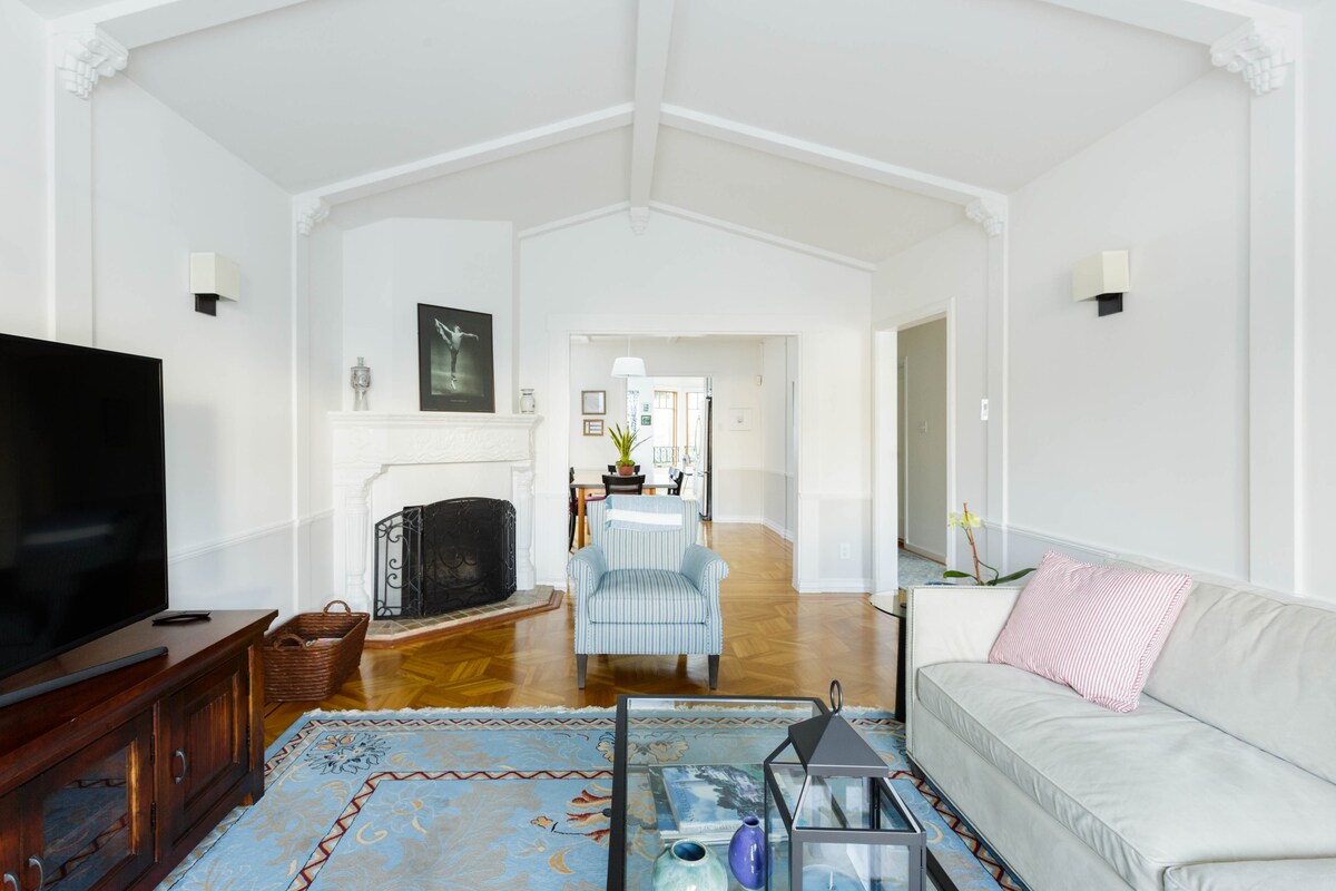 Parquet floors, decorative fireplace & original framed blueprints make the living room welcoming. If you like to cook, you'll enjoy our renovated kitchen w/professional appliances. The master & 2nd bedroom have queen-sized beds. The entire floor (w/private entrance) is yours. We're available to offer help if needed. One dedicated street parking space. Though SF is famous for fog, Noe Valley is a sunnier neighborhood. Explore via public transportation hubs in Noe Valley & The Castro.