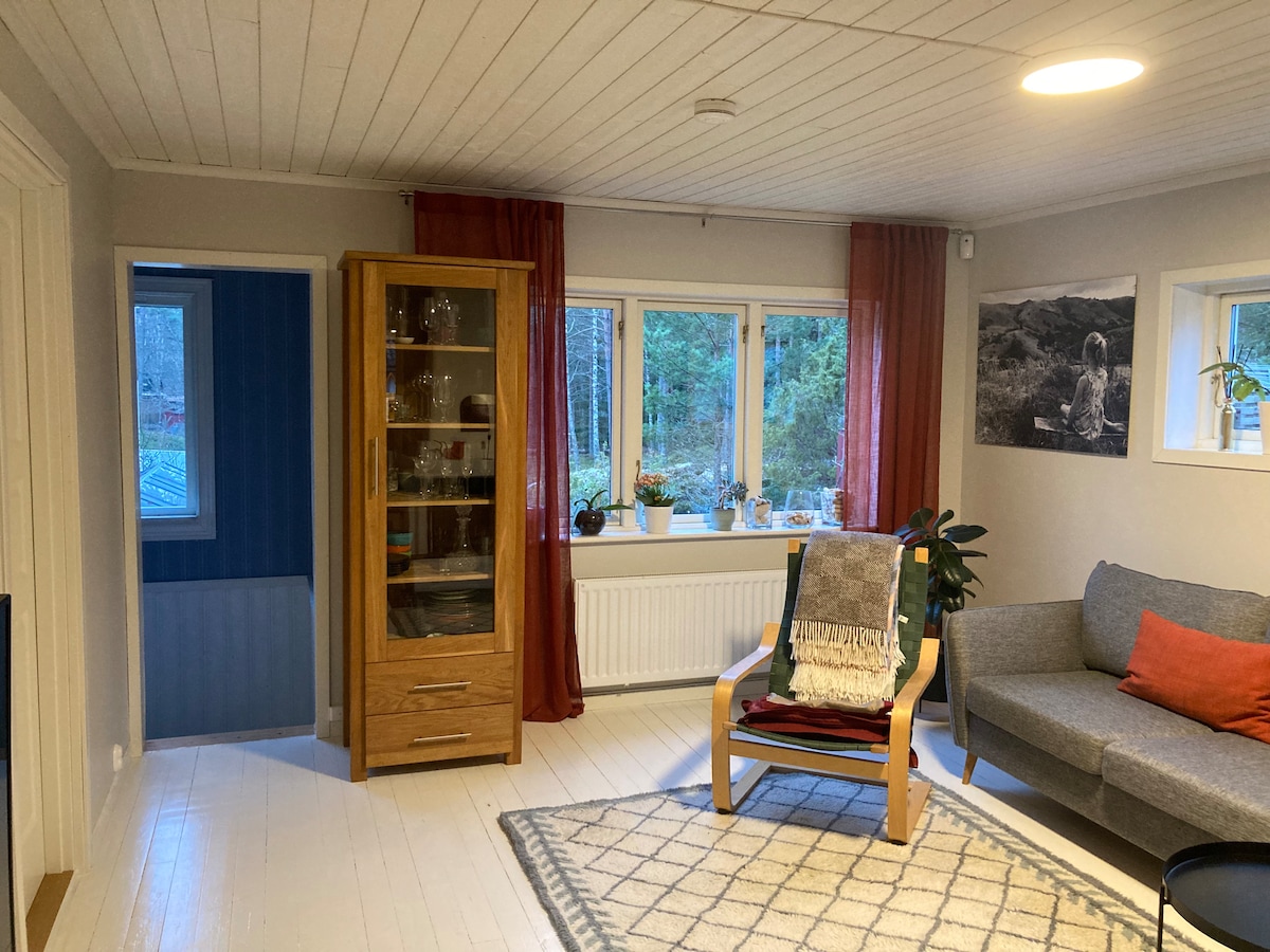 Casa de campo completamente renovada de 40 m2, en una parcela montañosa en medio de un bosque en una península. A 150 metros de la playa junto al mar Báltico con zona de barbacoa, prado y playa de arena. La cabaña tiene un dormitorio con una cama familiar para dos adultos + un niño. En la sala de estar hay un sofá cama que puede convertirse en una cama doble. También hay disponible un baño con ducha, una cocina totalmente equipada, un gran televisor y wifi. En el exterior también hay dos plazas al aire libre y plazas de aparcamiento. La parada de autobús está a 20 metros fuera de la parcela con autobuses directos a Estocolmo.