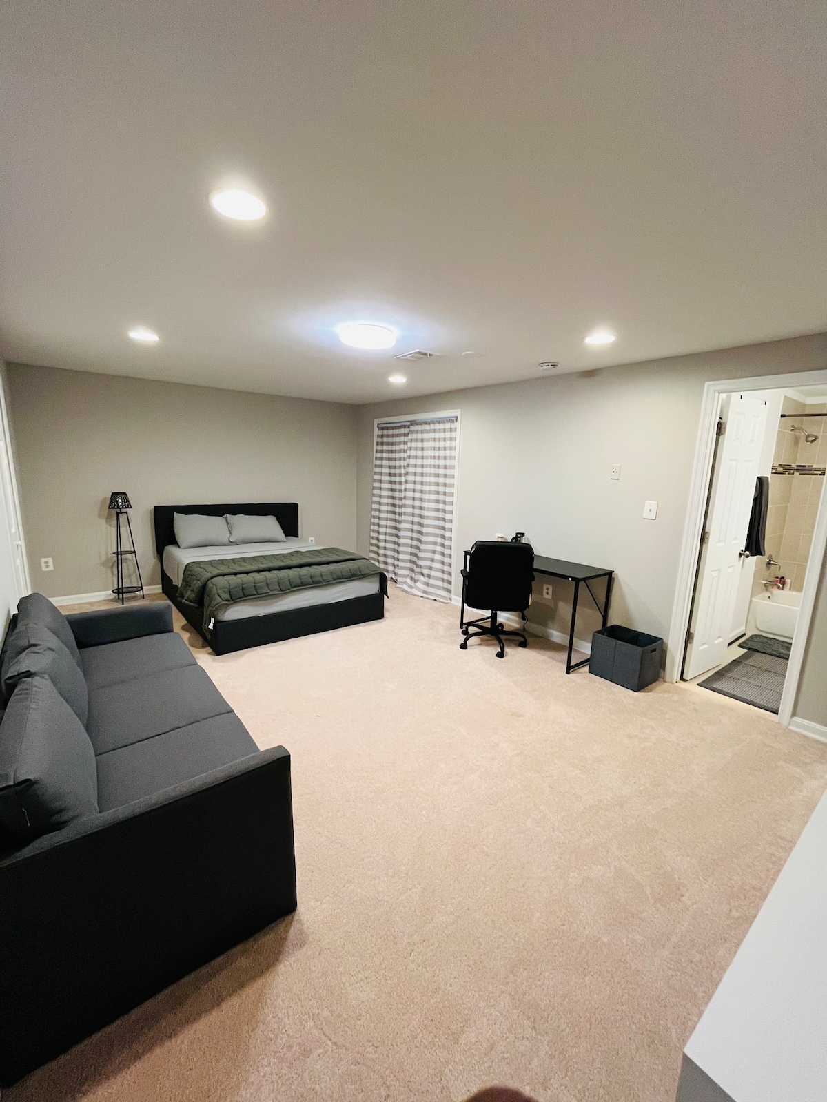 Encantadora casa de huéspedes de 1 dormitorio en Viena, VA Esta acogedora casa de huéspedes ofrece un refugio tranquilo con todas las comodidades de un hogar, con una amplia sala de estar, cocina pequeña, espacio de trabajo y una lavadora y secadora privadas. Ya sea que estés aquí por negocios o por placer, disfruta de un fácil acceso a Tysons Corner, al metro de D.C. y al encantador centro de Viena, con cafeterías, restaurantes y tiendas locales a pocos minutos. ¡Relájate con todo lo necesario para una estancia cómoda!