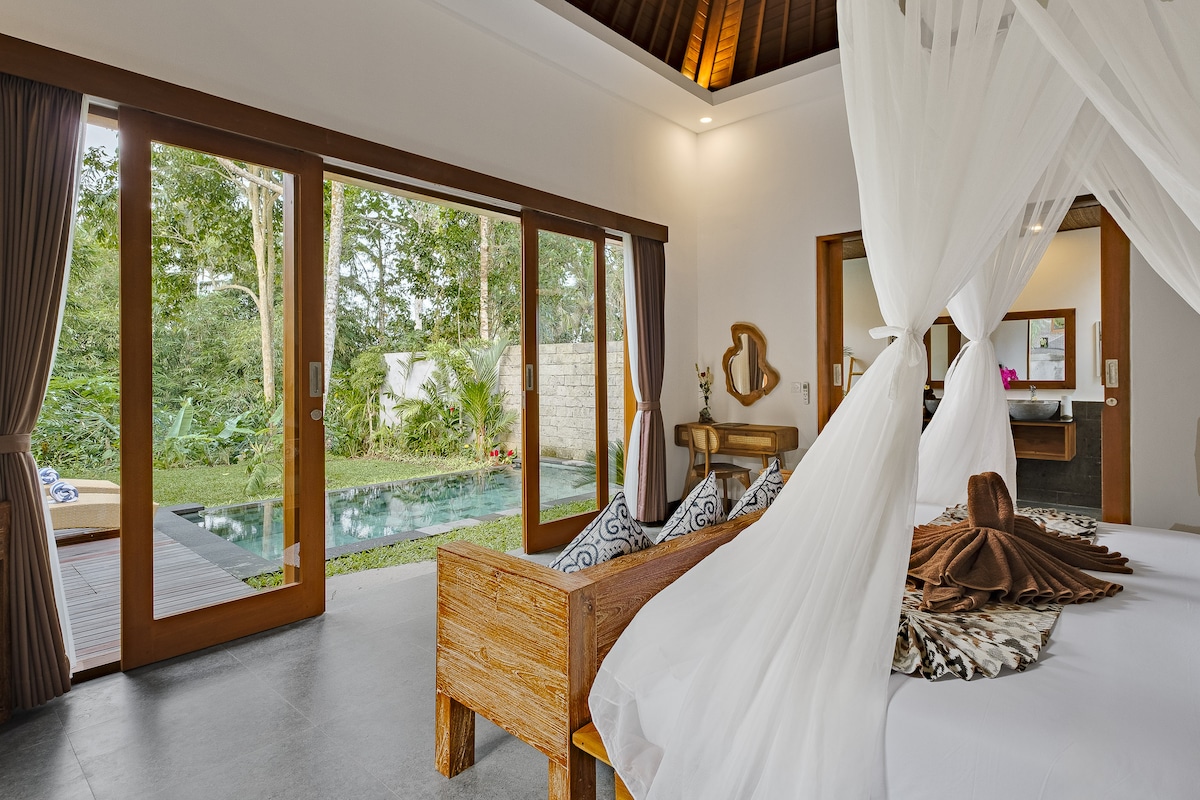 Escape to your own private jungle villa with pool, a secluded sanctuary where luxury meets nature. The Love Ashram is a romantic retreat for deep relaxation & connection. Surrounded by lush greenery, enjoy privacy, jungle views, & a peaceful atmosphere-ideal for couples, honeymoons, & nature lovers seeking a serene escape in Ubud. As part of the living landscape, the rice fields surrounding the villa move through natural cycles—seeded, growing, & harvested—so views may vary throughout the year.