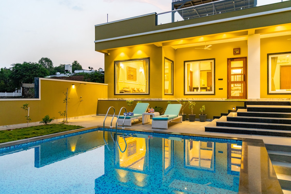 Welcome to our elegant 2BHK Pool villa, a serene escape perfect for families, couples or small groups. Nestled in a tranquil neighborhood, the villa features a private swimming pool, a lush garden, and spacious living areas. Each bedroom is tastefully decorated and equipped with modern amenities for a comfortable stay. Enjoy cooking in a fully equipped kitchen. Its the ideal spot to unwind and explore. Spend your afternoons lounging by the pool. Your Oasis awaits.