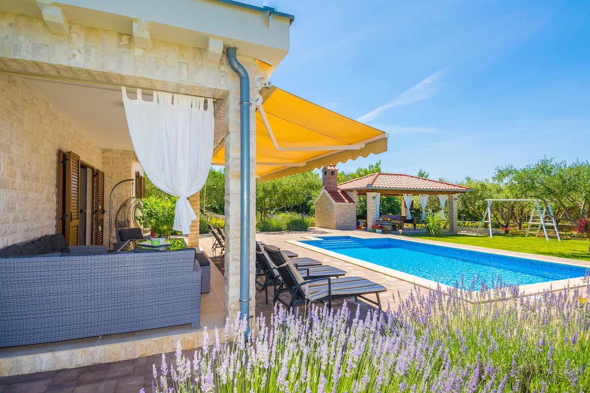 Te damos la bienvenida a la villa Veleư. ¡Una propiedad única te ofrece todo lo que puedas necesitar para pasar unas vacaciones inolvidables en Croacia! La propiedad se encuentra en los suburbios de la ciudad de Zadar, donde puedes disfrutar de un momento tranquilo con tu familia o amigos lejos de un ruido y alboroto de la ciudad, nadar, tomar el sol y tomar bebidas frías cerca de la piscina, preparar comidas en la cocina de verano y reunirte en una enorme mesa de roble y ver magníficas montañas de Velebit.