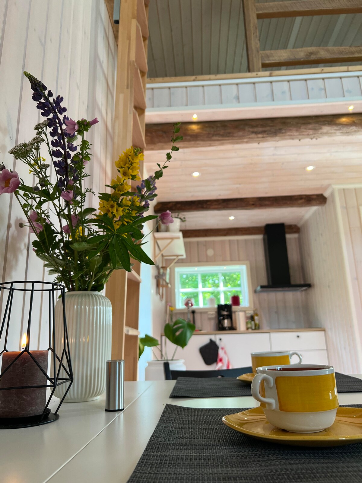 Tu escondite escandinavo en el borde del bosque: una casa de campo moderna, llena de luz de 75 m² enclavada en vegetación con toques de diseño bien pensados. Disfruta del solárium con vistas panorámicas a los prados y al bosque, una sauna privada de vapor y absoluta tranquilidad. Un dormitorio más una oficina flexible/habitación para niños con sofá cama, cocina totalmente equipada, sala de estar abierta y un vasto jardín familiar. Lagos, rutas de senderismo y ciclismo en la puerta, Gotemburgo a solo 1,5 horas de distancia, ¡desconecta con facilidad!