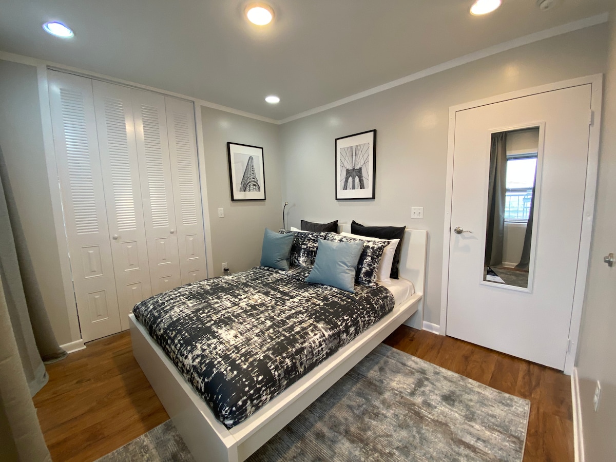 Este es un hermoso apartamento de un dormitorio totalmente renovado en una calle tranquila a pocos minutos de Nueva York. El apartamento es amplio, con una sala de estar/cocina de concepto abierto. La sala de estar tiene grandes ventanales con mucha luz natural, TV por cable y sofá cama. La cocina tiene una estufa nueva, microondas y horno tostador. Está totalmente equipada con platos, cubiertos, tazas y muchos extras. El dormitorio tiene una cama tamaño queen nueva y cómoda, con vestidor, TV y radio reloj. ¡Wifi incluido!