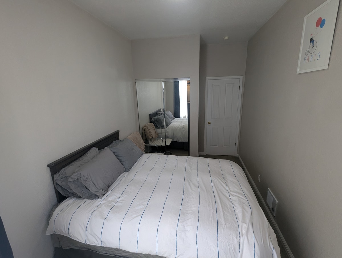 Nuestro anuncio es de un dormitorio privado limpio y tranquilo con una cama tamaño queen, colchón de buena calidad y ropa de cama limpia, un escritorio, una silla y una lámpara. El baño y la cocina americana se comparten con otro huésped, la ubicación es excelente, la estación de BART de Balboa Park está cerca y el Muni de varias líneas está a dos manzanas de varios lugares pintorescos o del centro de San Francisco, por lo que es un lugar ideal para alojarse durante una visita o un trabajo a corto plazo. Hay aparcamiento gratuito en la calle.