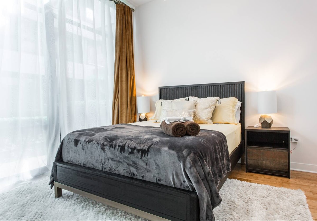 TENLO TODO EN W3A Chicago Wrigley Field/Boystown/Lakeview -Recientemente renovado como nuevo en East Lakeview, seguro y céntrico. -10 minutos a pie de Wrigley Field, Boys Town, playas, supermercados, restaurantes con cenas nocturnas. A 5 minutos a pie de la línea roja del metro Sheridan (directo al centro de la ciudad), aparcamiento privado cerrado 10 $/noche y/o permisos gratuitos para aparcar en la calle. - Ropa de cama de 600 hilos, almohadas suaves y esponjosas, batas de casa, wifi de alta velocidad, altavoces Sonos, diseño elegante y lavadora y secadora en la unidad.