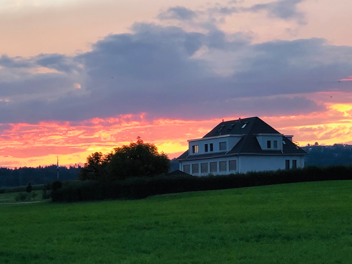 Private Unterkunft für zwei Personen in schönem Holzhäusschen mit toller Aussicht auf einem Bauernhof mitten im Grünen. Angebot für zwei Personen inklusive Frühstück. Es kann ein Candle light Dinner für Fr. 160.- dazu gebucht werden(bitte vor bestellen).Bezahlung vor Ort mit Twint oder Bar. Die Küche kann gegen eine Reinigungsgebühr von Fr. 25.- benutzt werden.