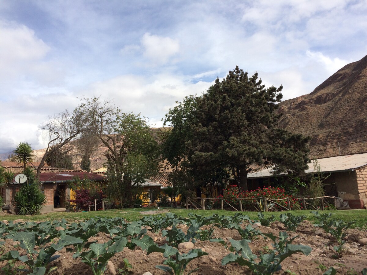 🌿 Una acogedora casa de campo a 5 minutos del centro de Urubamba. 🌄 Ofrecemos: - 🏠 Habitaciones amplias con baño privado - Áreas comunes cálidas; sala, comedor, cocina - 🌄Exteriores mágicos: jardines, parrilla, fogata y vistas a las montañas - 👐 Ideal para familias, amigos y viajeros ✨ - 🔆Calefacción en la habitación. - 🧺Lavandería - 🚴♀️ Delivery - 🍳Cocina - 📶 WIFI - 🏔️Majestuosa montaña Saywa - 🏛️Lugares arqueológicos alrededor.