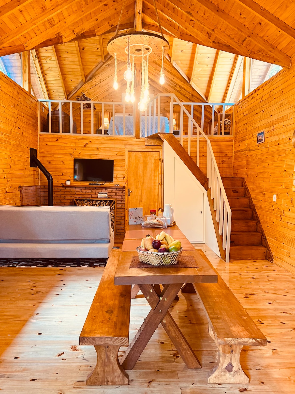 Comodidad y tranquilidad para que usted y su familia disfruten. Terra Luni cuenta con 1 suite, 1 dormitorio con 2 camas individuales, sala de estar con chimenea, cocina completa y otro baño. Las habitaciones tienen aire acondicionado y ofrecemos un colchón para un quinto huésped. En el exterior hay un espacio con bañera y spa para los pies, chimenea, dos columpios, zona de hamacas y un jardín gigante para disfrutar de la vista, en medio de la naturaleza. ¡Además de todo esto, admitimos mascotas!